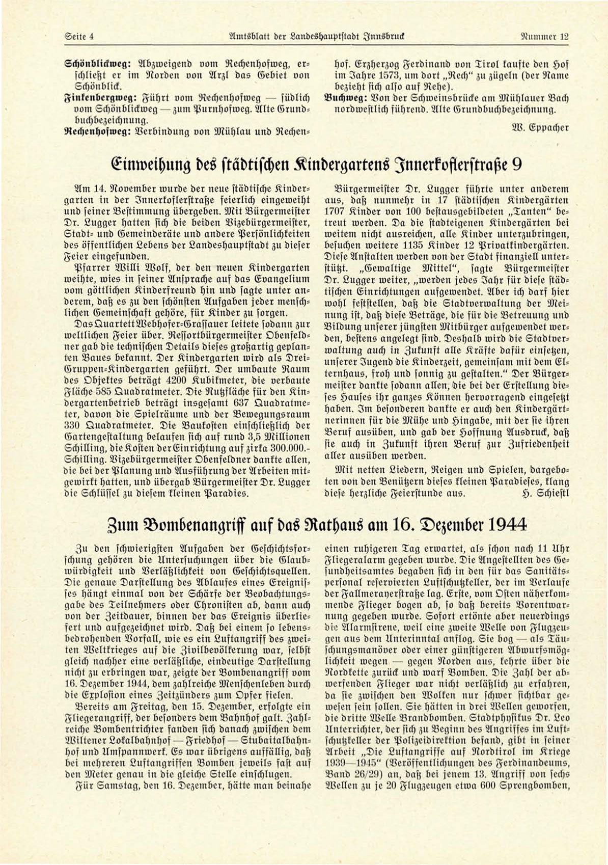 der Fallmerayerstraße lag. Erste, vom Osten näherkommende Flieger bogen ab, so daß bereits Vorentwarnung gegeben wurde. Sofort ertönte aber neuerdings