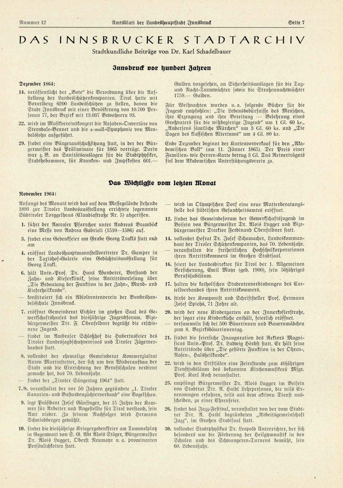 Beisein von Bürgermeister D r . Alois Lugger und Vizebürgermeister Direktor Ferdinand Obenfcldner statt.