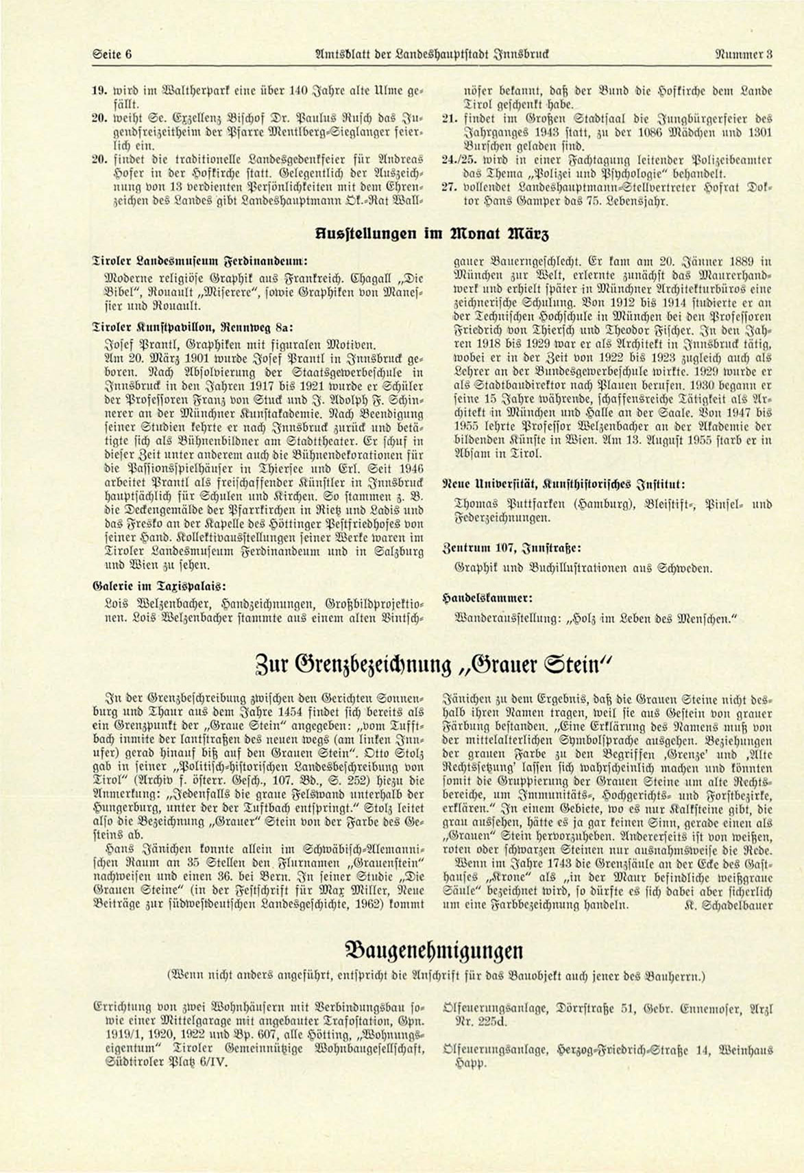 A:n 20. März 1901 wnrde Josef P r a n t l in Innsbruck geboren. Nach Absolvierung der Staatsgewerbeschule in