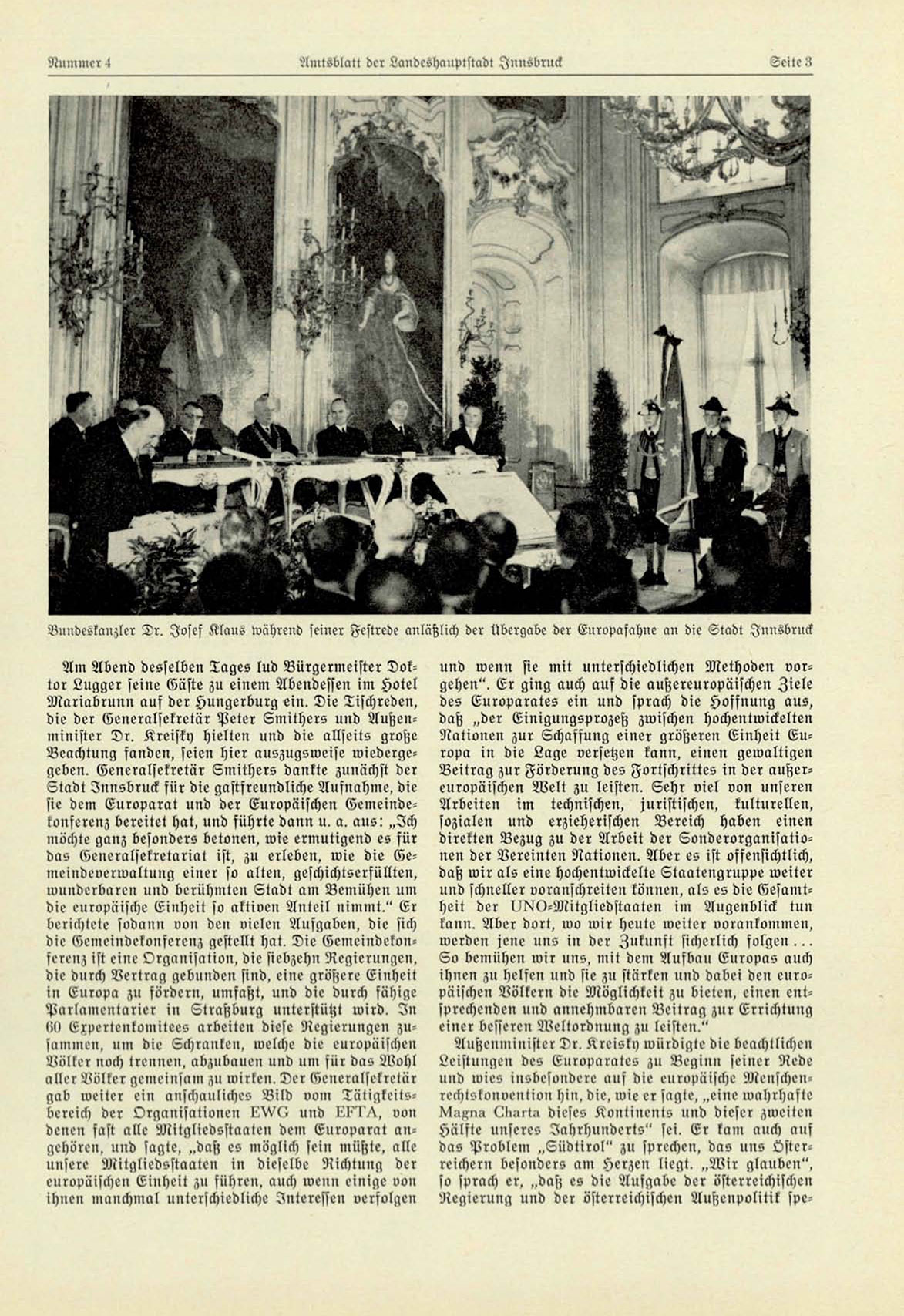 Bundeskanzler Tr. Ioscf Klaus während seiner Fcslrcd^ anläßlich der llbcrgabc der Europafahnc an die Stadt Iinisbrnck
