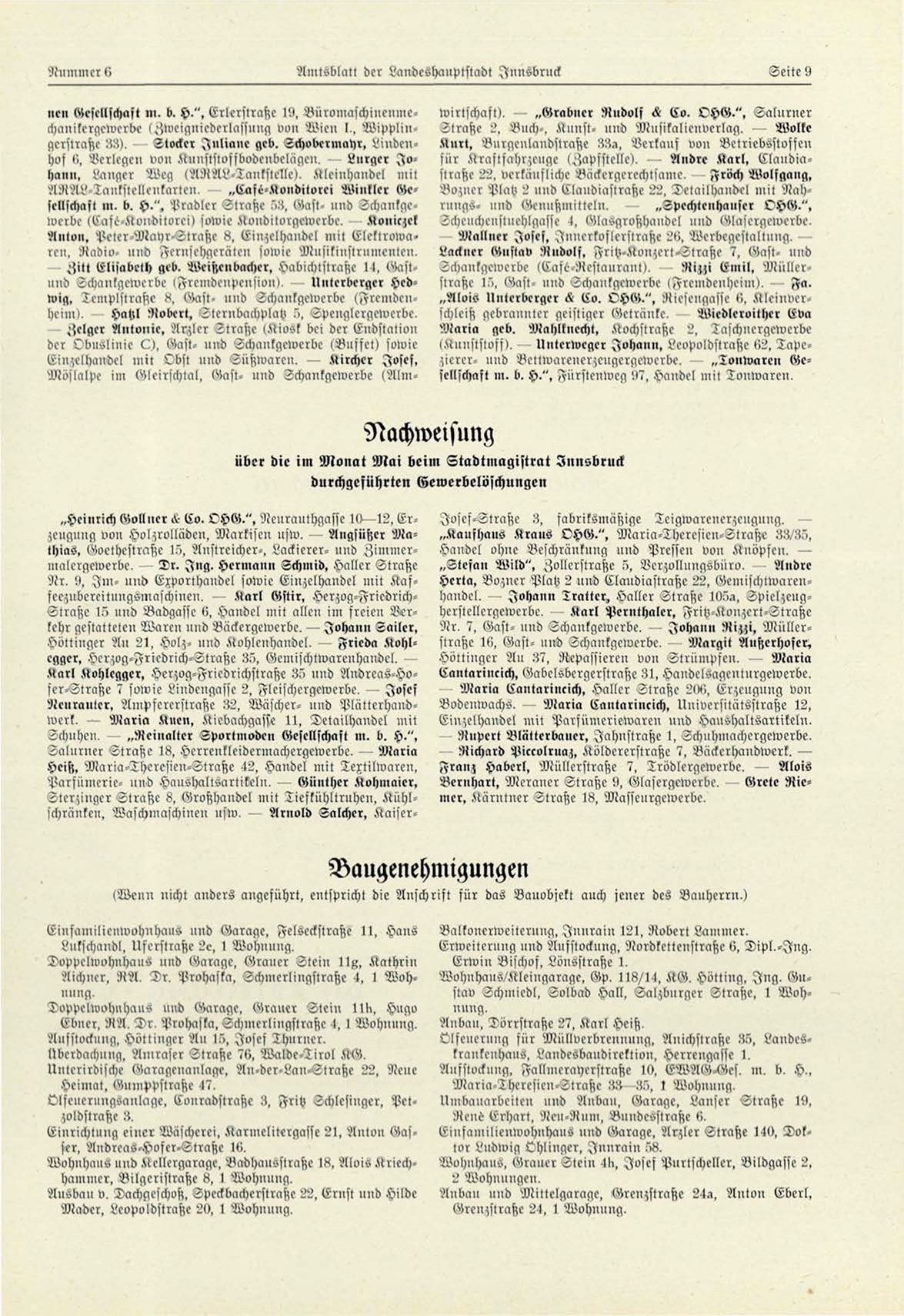 über die im Monat Mai beim Stadtmagistrat Innsbruck