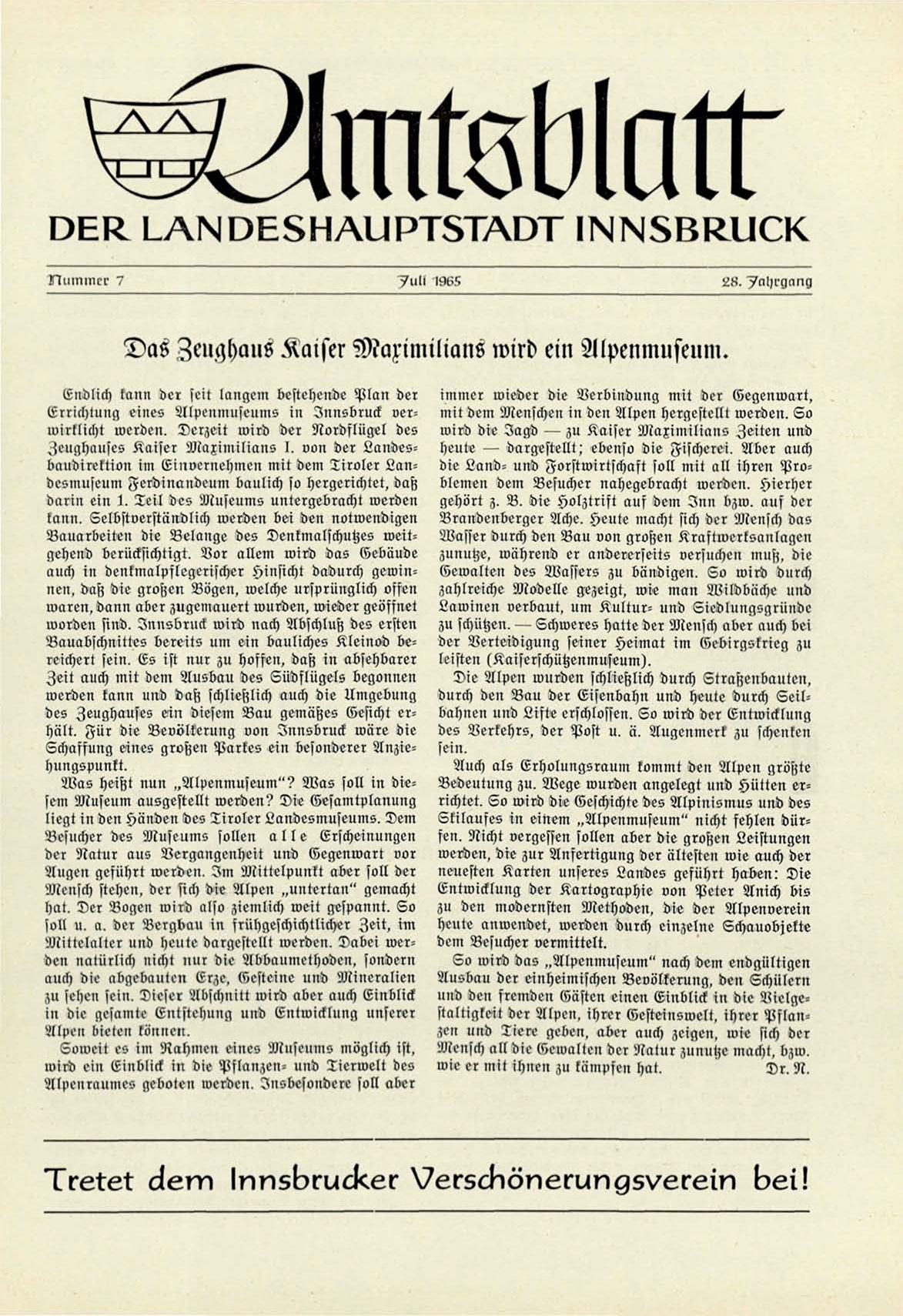 des Zeughauses ein diesem Bau gemäßes Gesicht erhält. Für die Bevölkerung von Innsbruck wäre die