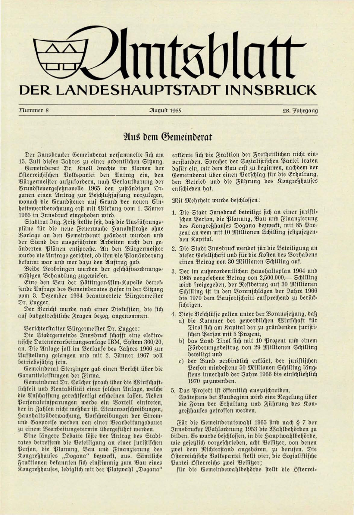 1965 in Innsbruck eingehoben wird.