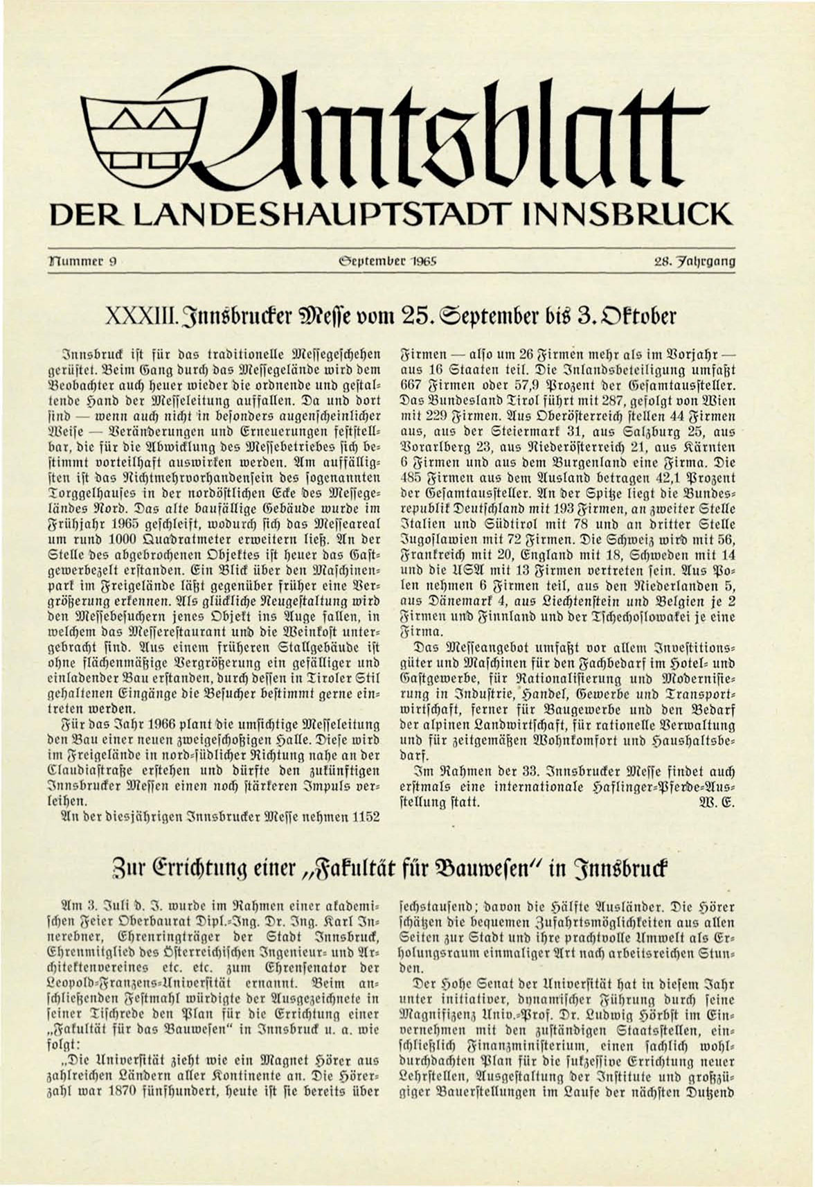 XXXIII.Innsbrucker Messe vom 25. September bis I.Oktober
