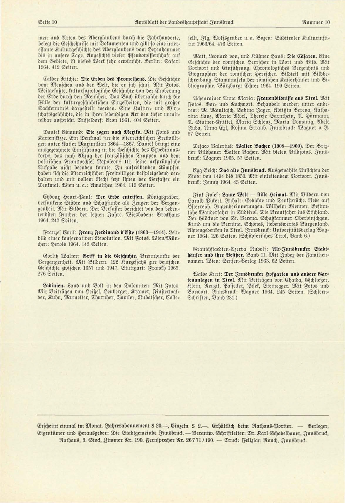 Eigentümer und Herausgeber: Die Stadtgemeinde Innsbruck. — Verantw. Schriftleiter: Dr. Karl Schadclbauer, Iuusbrnck,