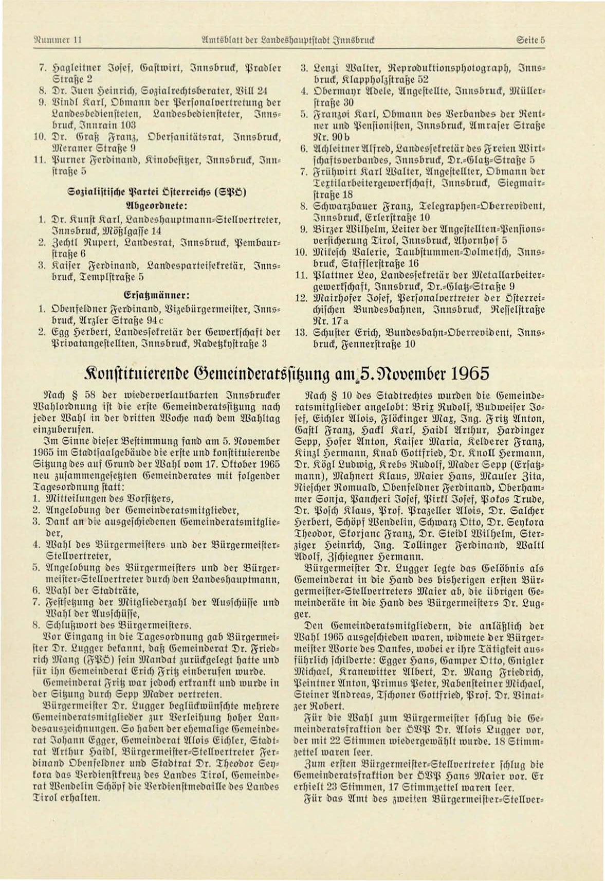 Konstituierende Gemeindemtssitzung an^5. November 1965