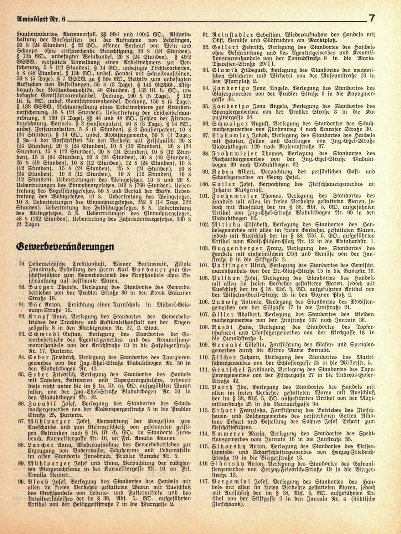 111. H e n t s c h e l Ferdinand, Verlegung des Standortes des Tapezierergewerbes von der Fischergasse 27 in die Andreas-HoferStraße 42.