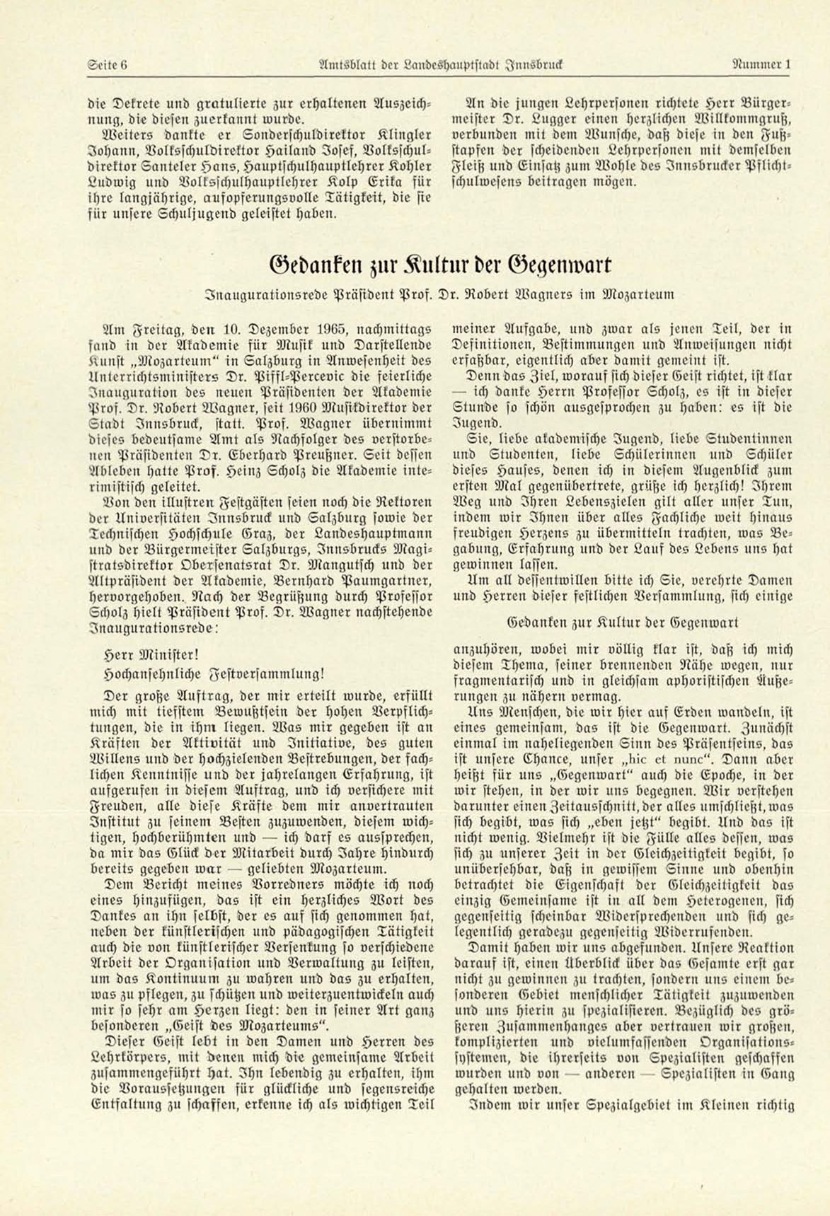 Stadt Innsbruck, statt. Prof. Wagner übernimmt