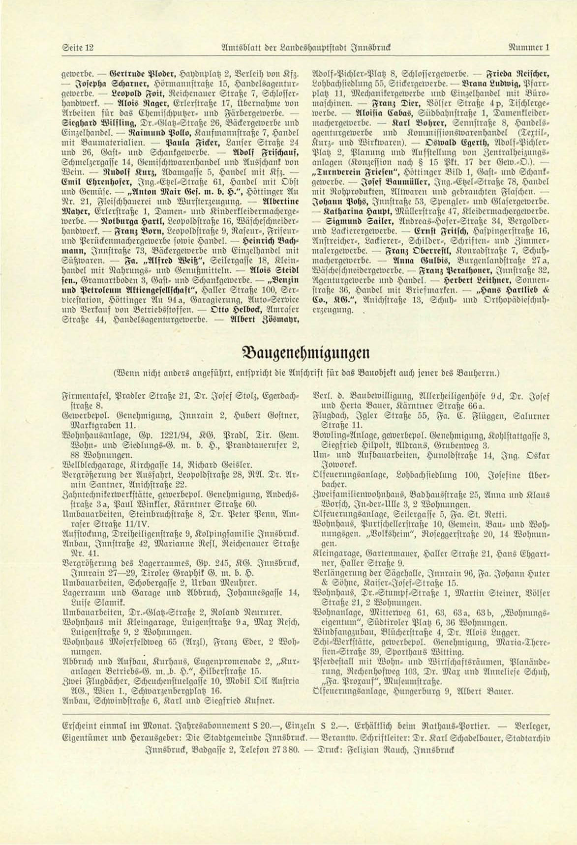 Eigentümer nnd Herausgeber: Die Stadtgcmeiude Innsbruck.— Verantw. Schriftleiter: Dr. Karl Schadelbaucr. Tladtarchiv