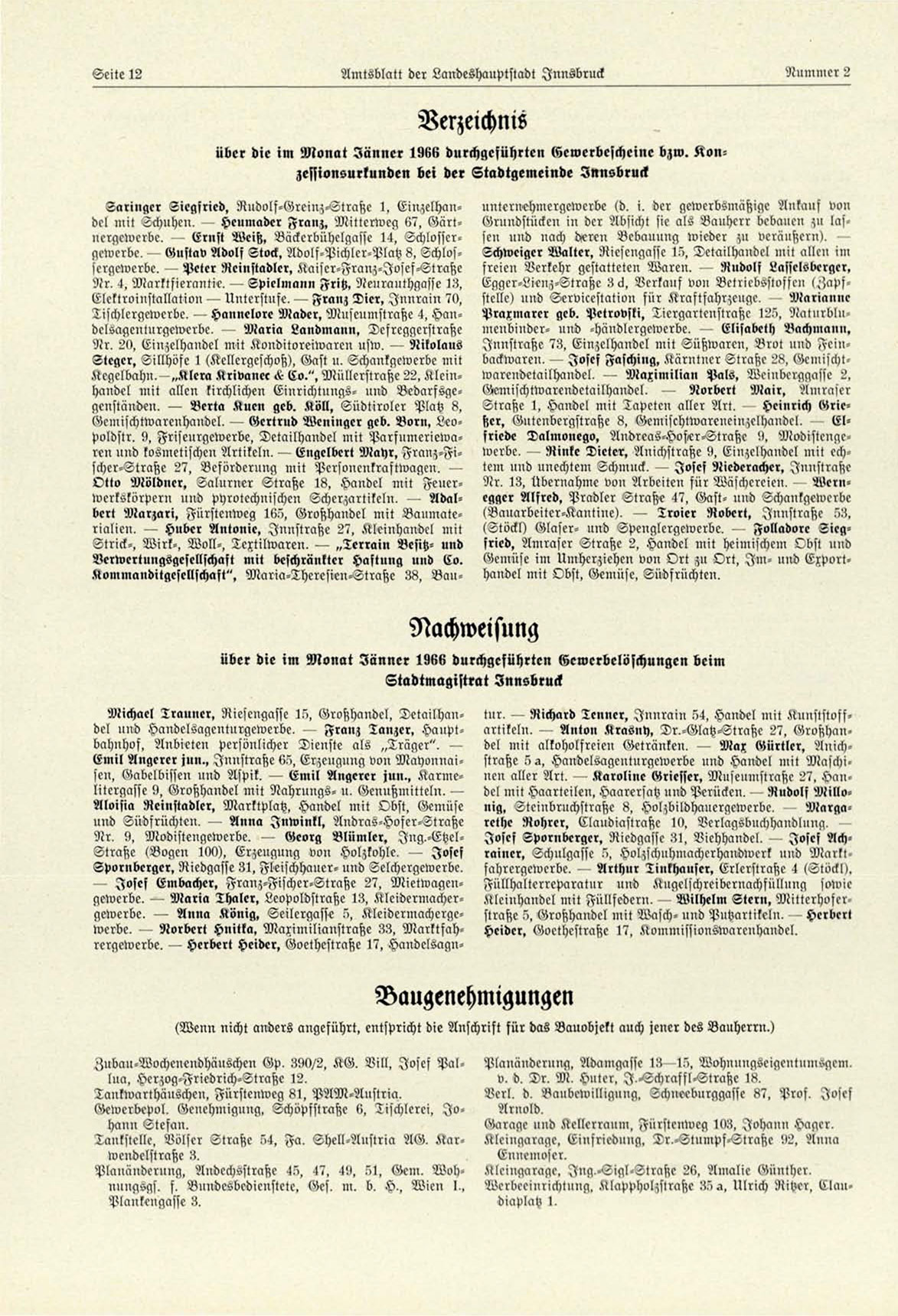 über die im Monat Jänner 1966 durchgeführten Gewerbelöschungen beim