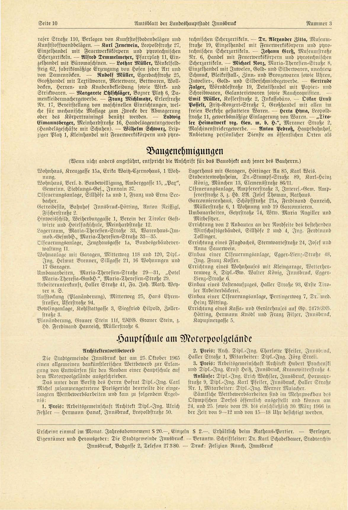 Die Stadtgemcinde Innsbrnck hat ai» 25, Oktober 1965