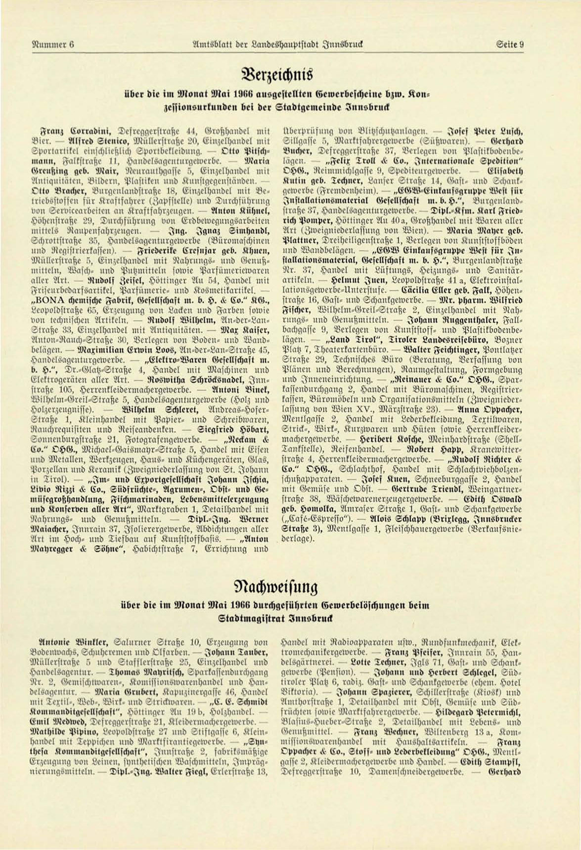 über die im Monat Mai 1966 durchgeführten Gewerbelöschungen beim