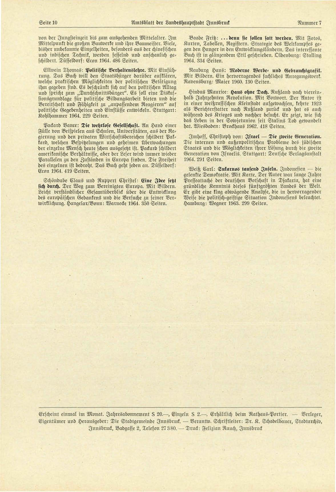 Eigentümer und Heransgeber: Die Stadtgcmeinde Innsbruck. — Vcrautw. Schriftleiter: Dr. K. Echadelbaner, Stadtarchiv,