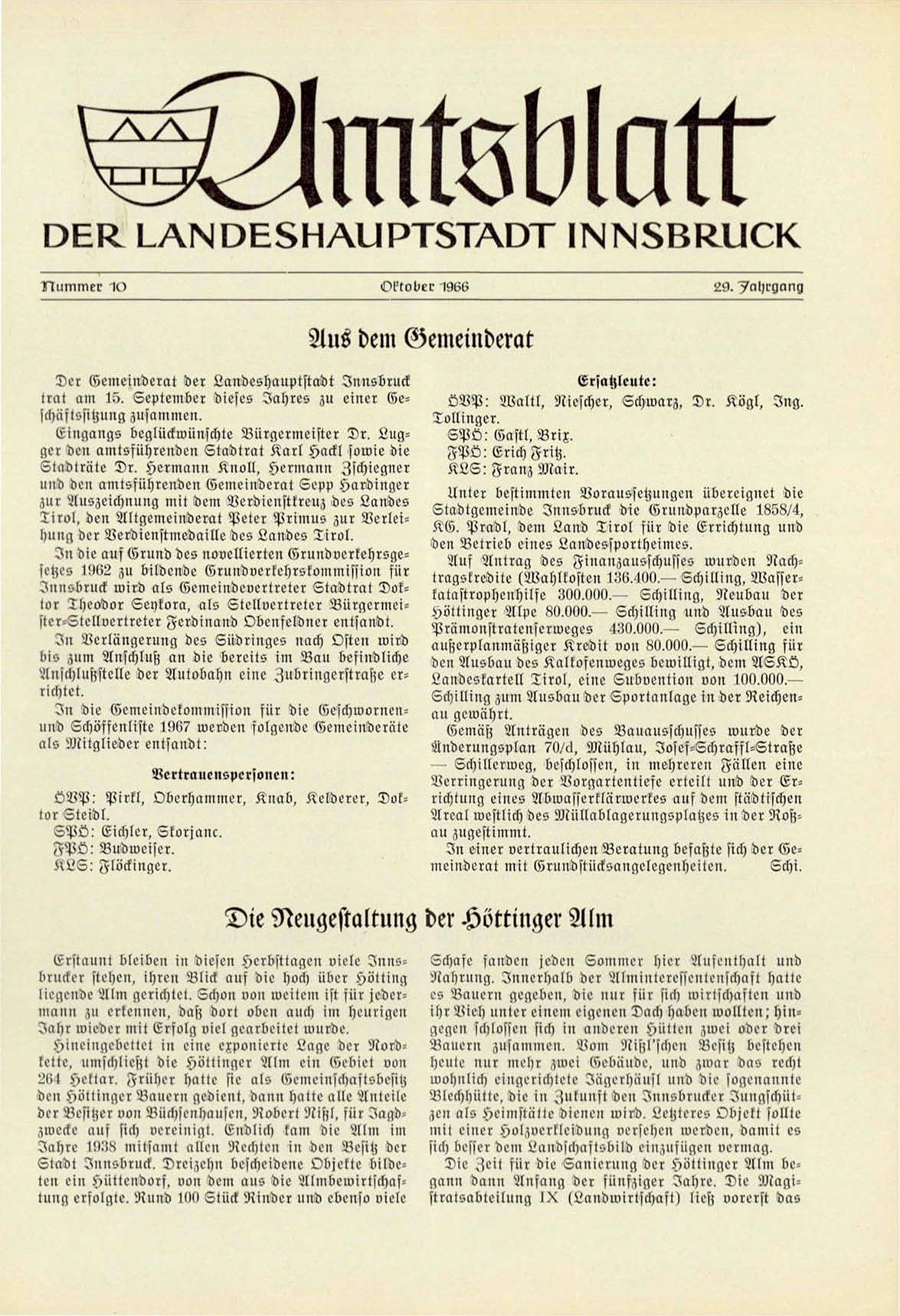 Höttinger Alpe 80.000.— Schilling und Ausbau des