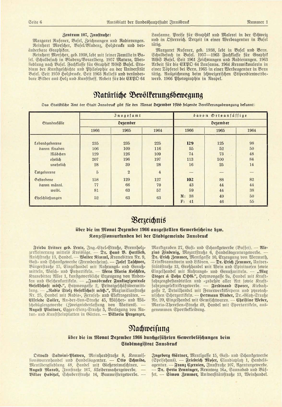 über die im Monat Dezember 1966 ausgestellten Gewerbescheine bzw.