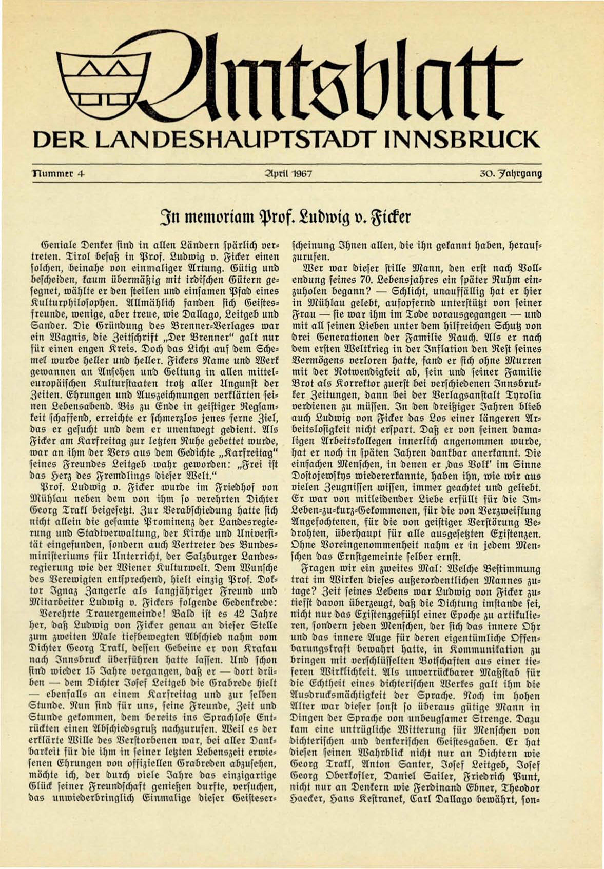 I n memoriam Prof. Ludwig v. Ficker
