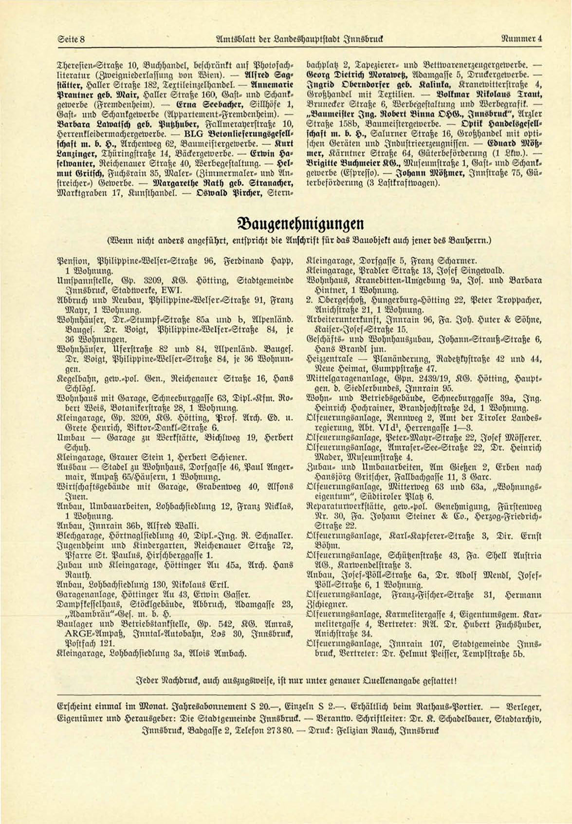 Eigentümer uud Herausgeber: Die Stadtgcmeinde Innsbruck. — Verantw. Schriftleiter: Dr. K. Schadelbauer, Stadtarchiv,