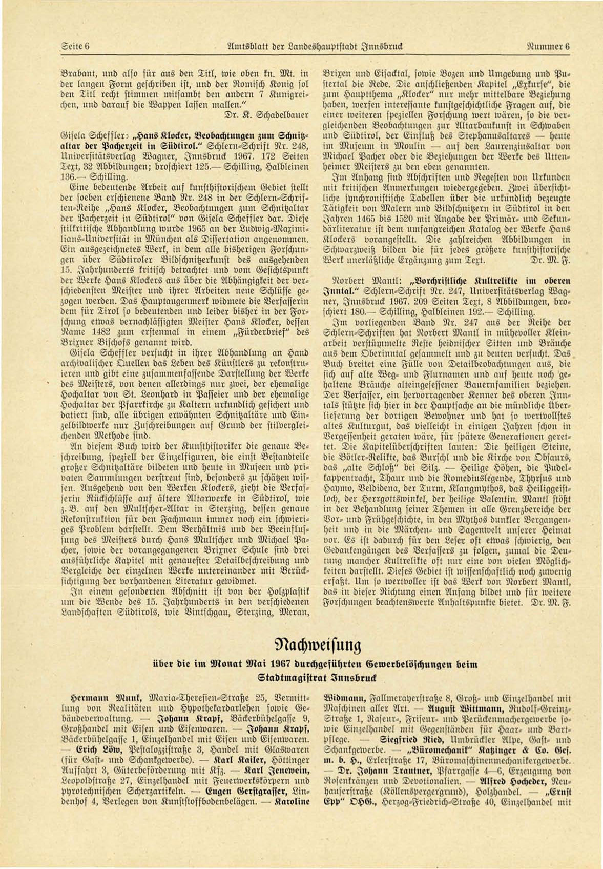 dem für Tirol so bedentendcn nnd leider bisher in der Forschung etwas vernachlässigten Meister Hans Klocker, dessen