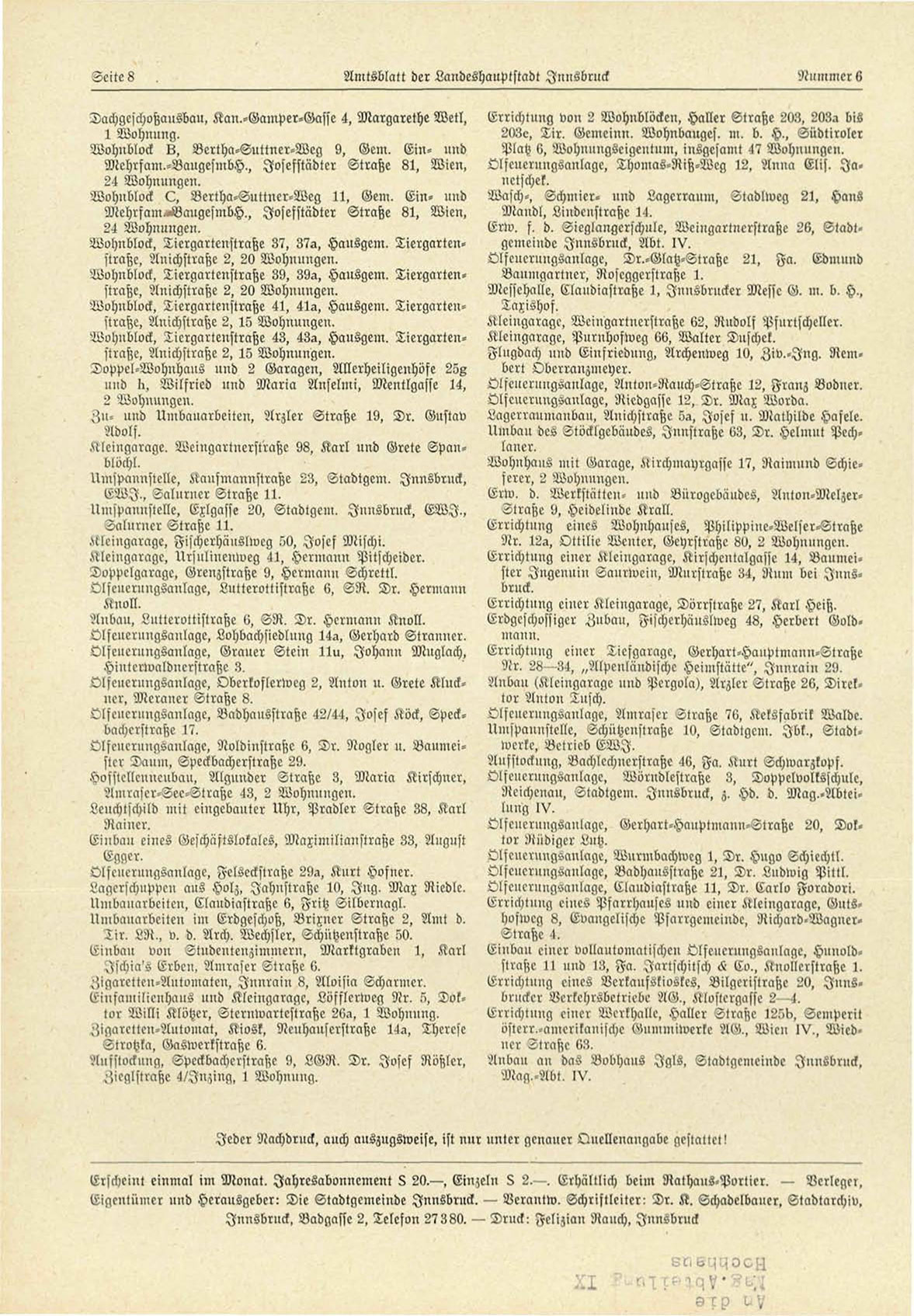 Eigcuüimcr und Herausgeber: Die Stadtgcmeiude Innsbruck. — Verantw. Schriftleiter- Dr. K. Schadelbaucr. Stadtarchiv.