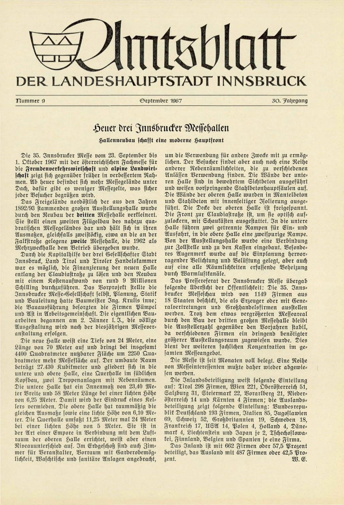 folgende Übersicht der Öffentlichkeit." Die 35. Innsbrucker Messeschau wird von 1149 Firmen aus
