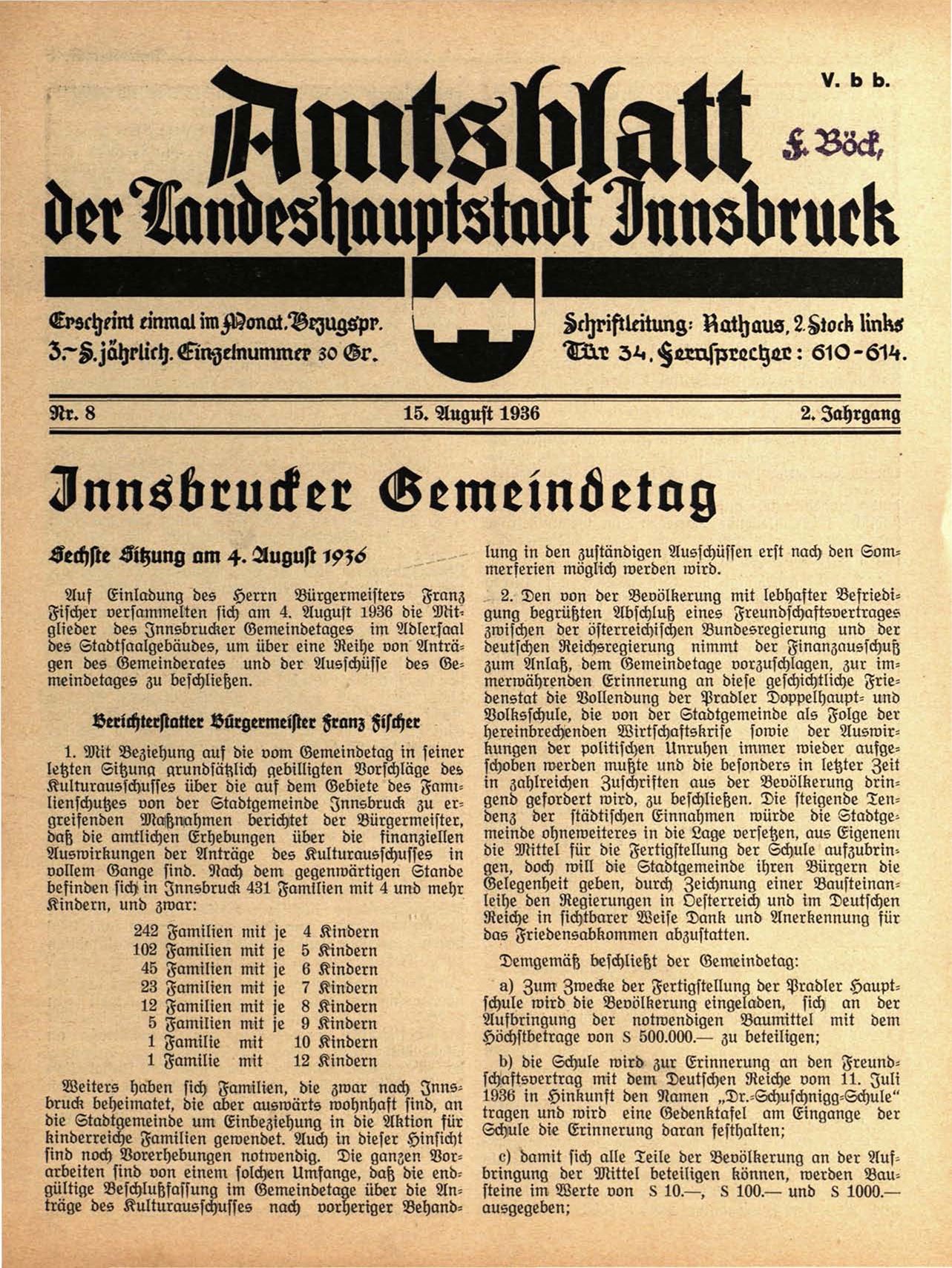 Kulturausschusses über die auf dem Gebiete des Familienschutzes von der Stadtgemeinde Innsbruck zu ergreifenden MajßMhmen berichtet der Bürgermeister,