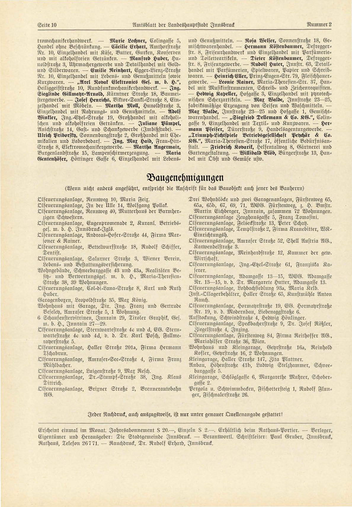 Eigentümer nnd Heransgcbcr: Die Stadtgcmcinde Innsbruck. — Vcrantwurtl. Schriftleiter- Paul Gruber, Iuusbruck,