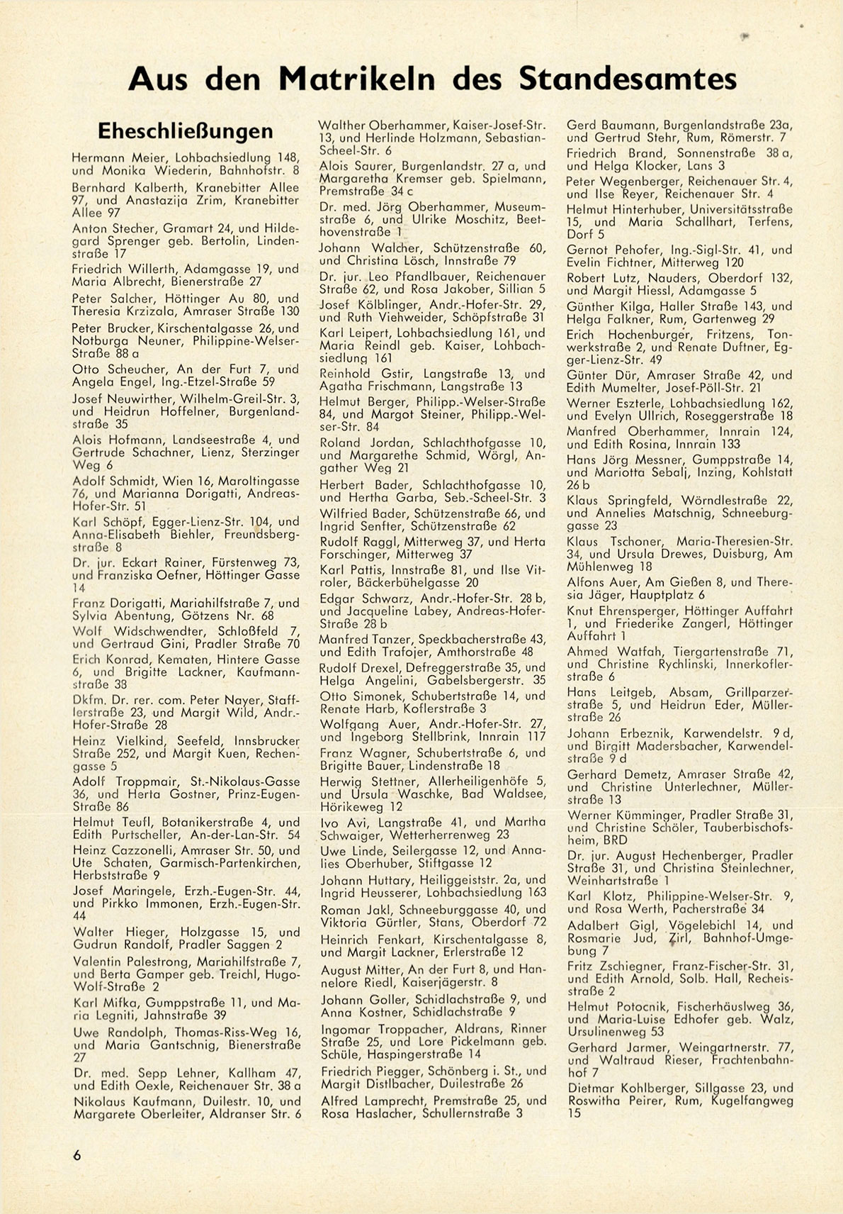 Aus den Matrikeln des Standesamtes