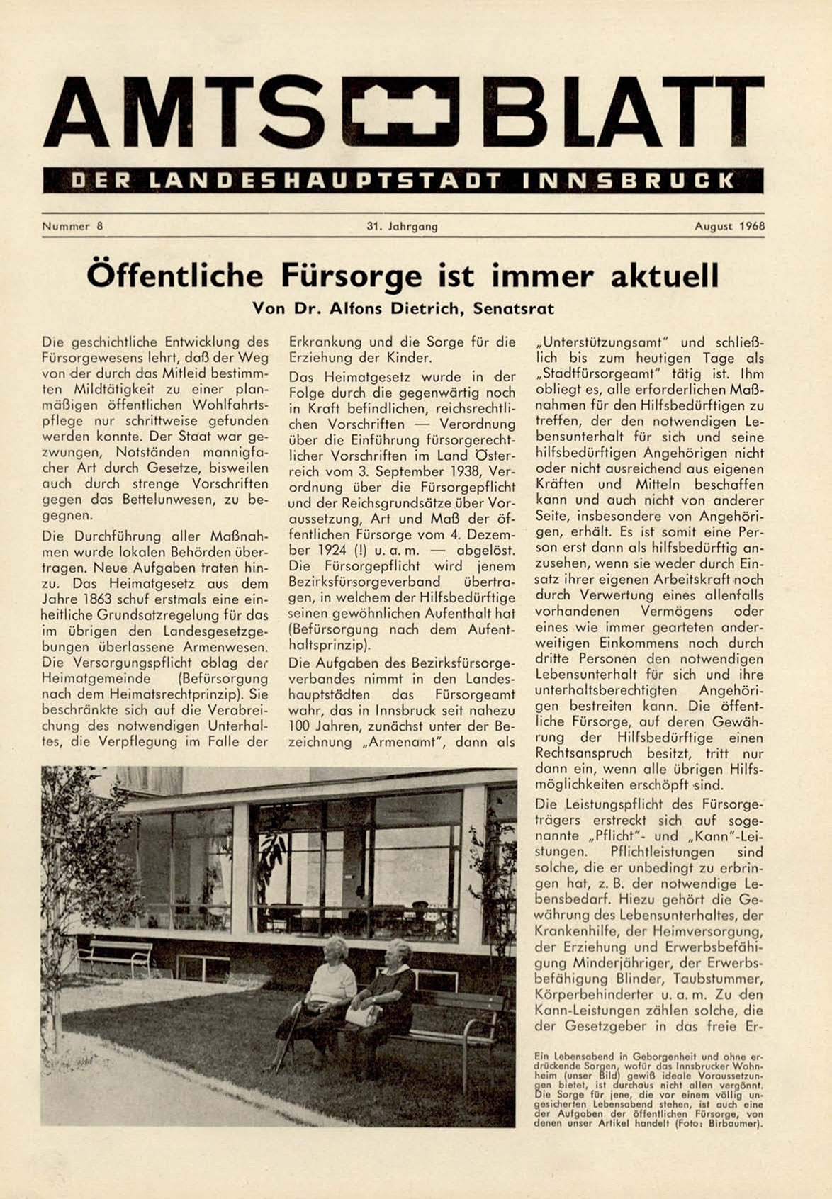 der G e s e t z g e b e r in das freie ErEin Lebensabend in Geborgenheit und ohne erdrückende Sorgen, wofür das Innsbrucker W o h n heim (unser Bild) gewiß ideale Voraussetzungen bietet, ist durchaus nicht a l l e n vergönnt.