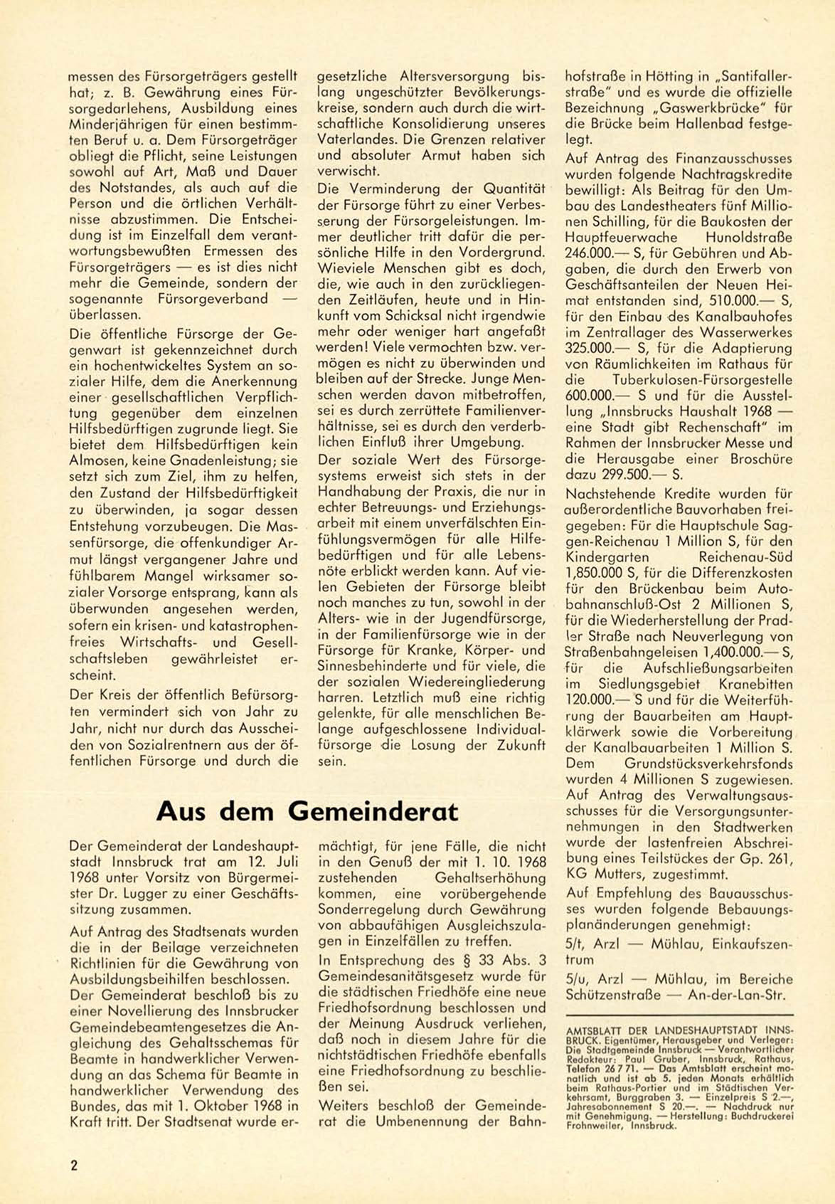 Redakteur: Paul G r u b e r , Innsbruck, Rathaus,