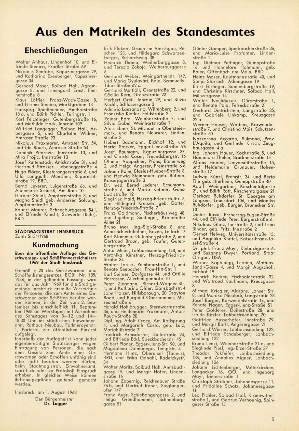 d a s für d a s J a h r 1969 für d i e S t a d t g e m e i n d e Innsbruck erstellte V e r z e i c h n i s