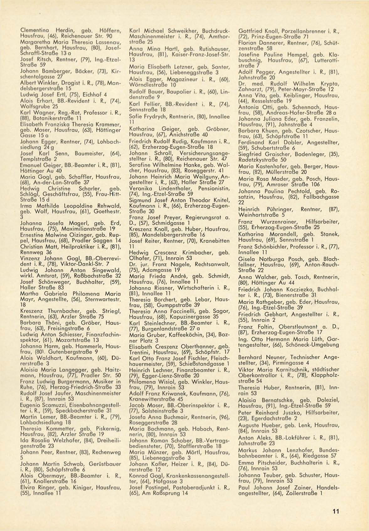 R e n t n e r i n , (63), A r z l e r S t r a ß e 75
