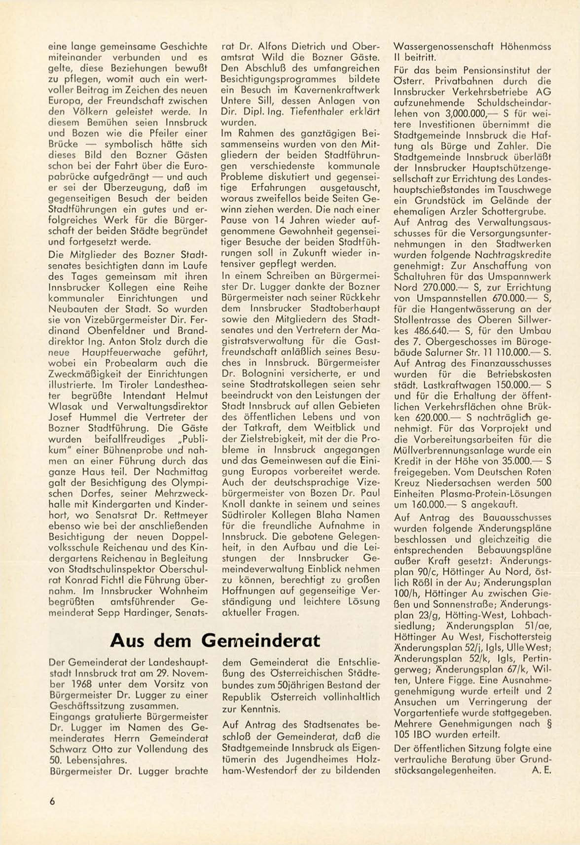 D e r G e m e i n d e r a t der Landeshauptstadt Innsbruck trat a m 29. N o v e m b e r 1968 unter d e m V o r s i t z v o n