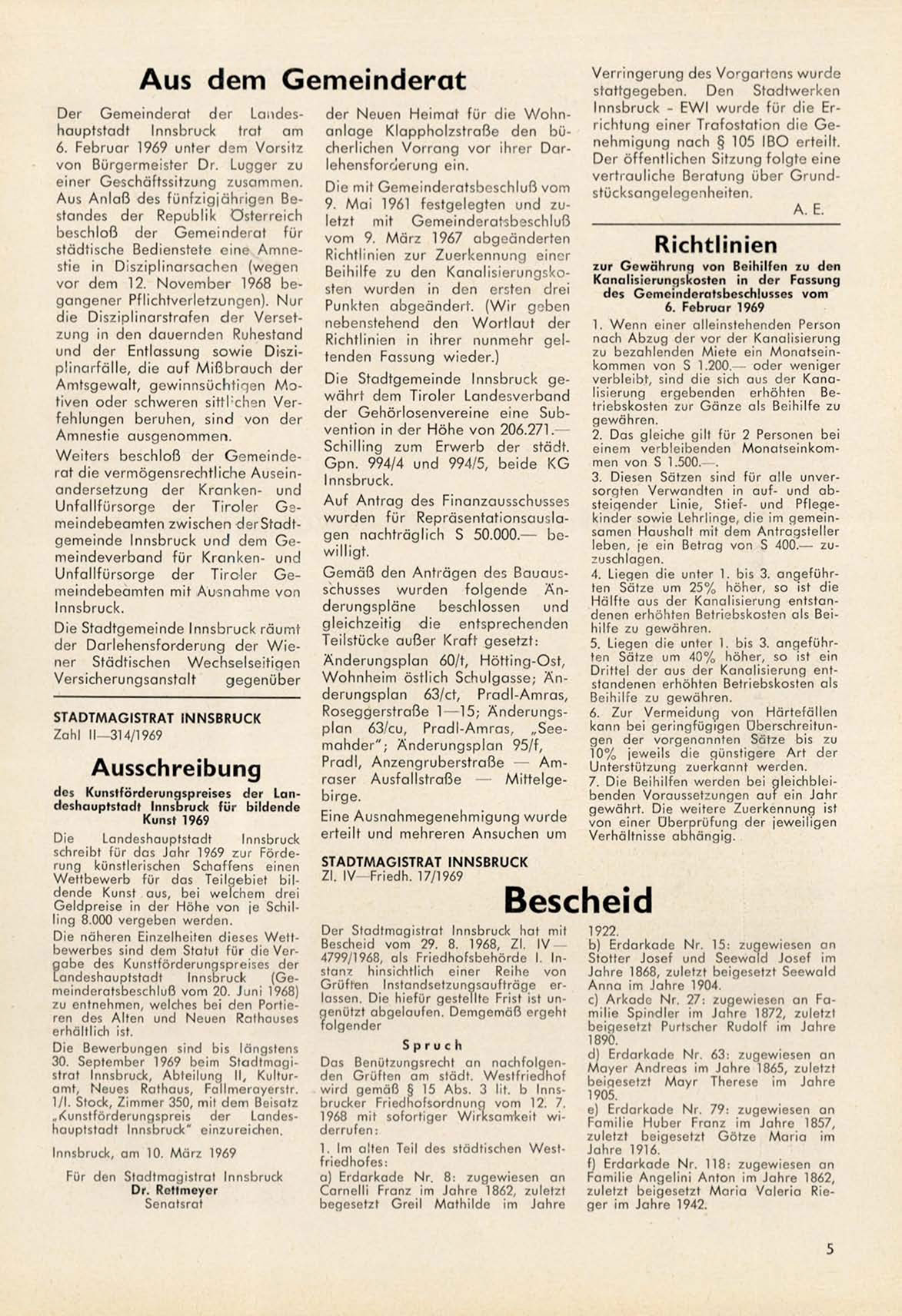 30. S e p t e m b e r 1969 beim S t a d t m a g i strat Innsbruck, A b t e i l u n g II, Kulturamt, Neues Rathaus, Fallmerayerstr.