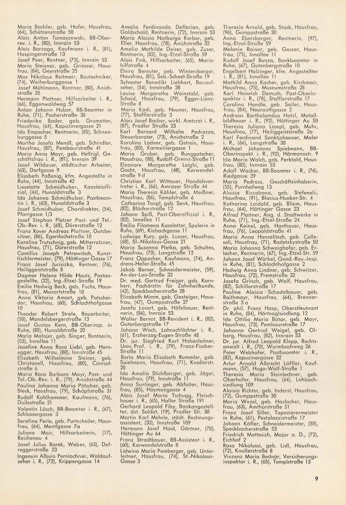 Vinzenz M a r i a Bednar, Versicherungsi n s p e k t o r i. R., (65), T e m p i s t r a ß e 13