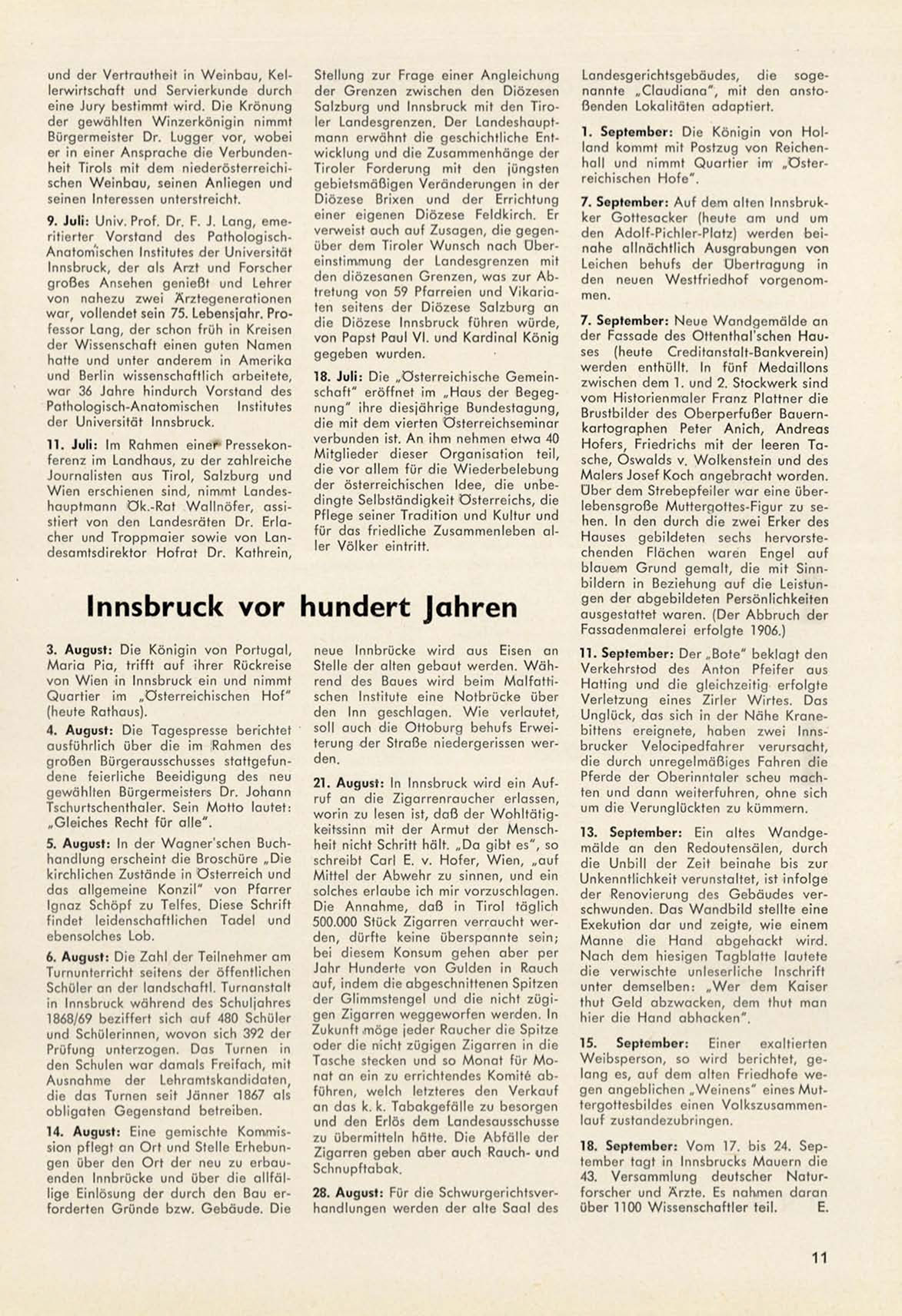 18. September: V o m 17. bis 24. S e p t e m b e r t a g t in Innsbrucks M a u e r n d i e