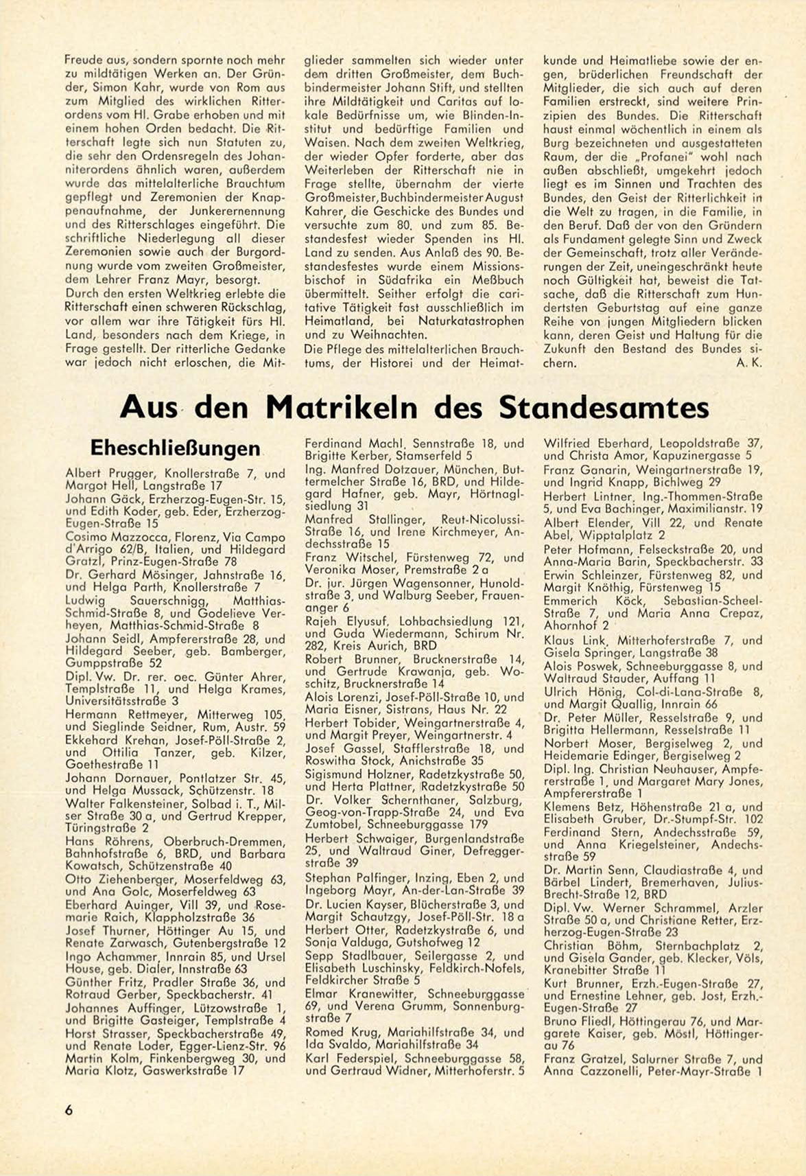 Aus den Matrikeln des Standesamtes