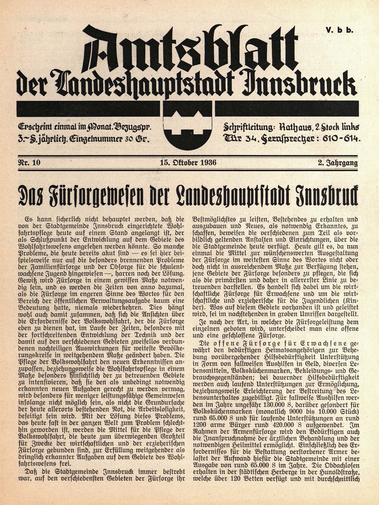 von der Stadtgemeinde Innsbruck eingerichtete Wohlfahrtspflege heute auf einem Stand angelangt ist, der