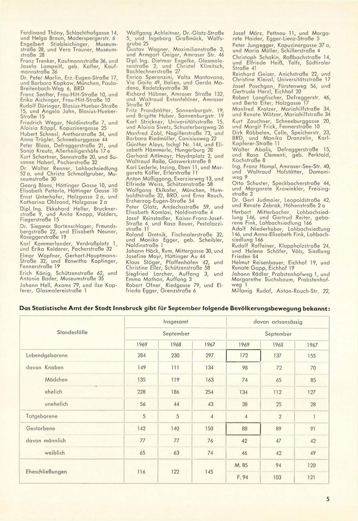 Das Statistische A m t der Stadt Innsbruck gibt f ü r S e p t e m b e r folgende B e v ö l k e r u n g s b e w e g u n g