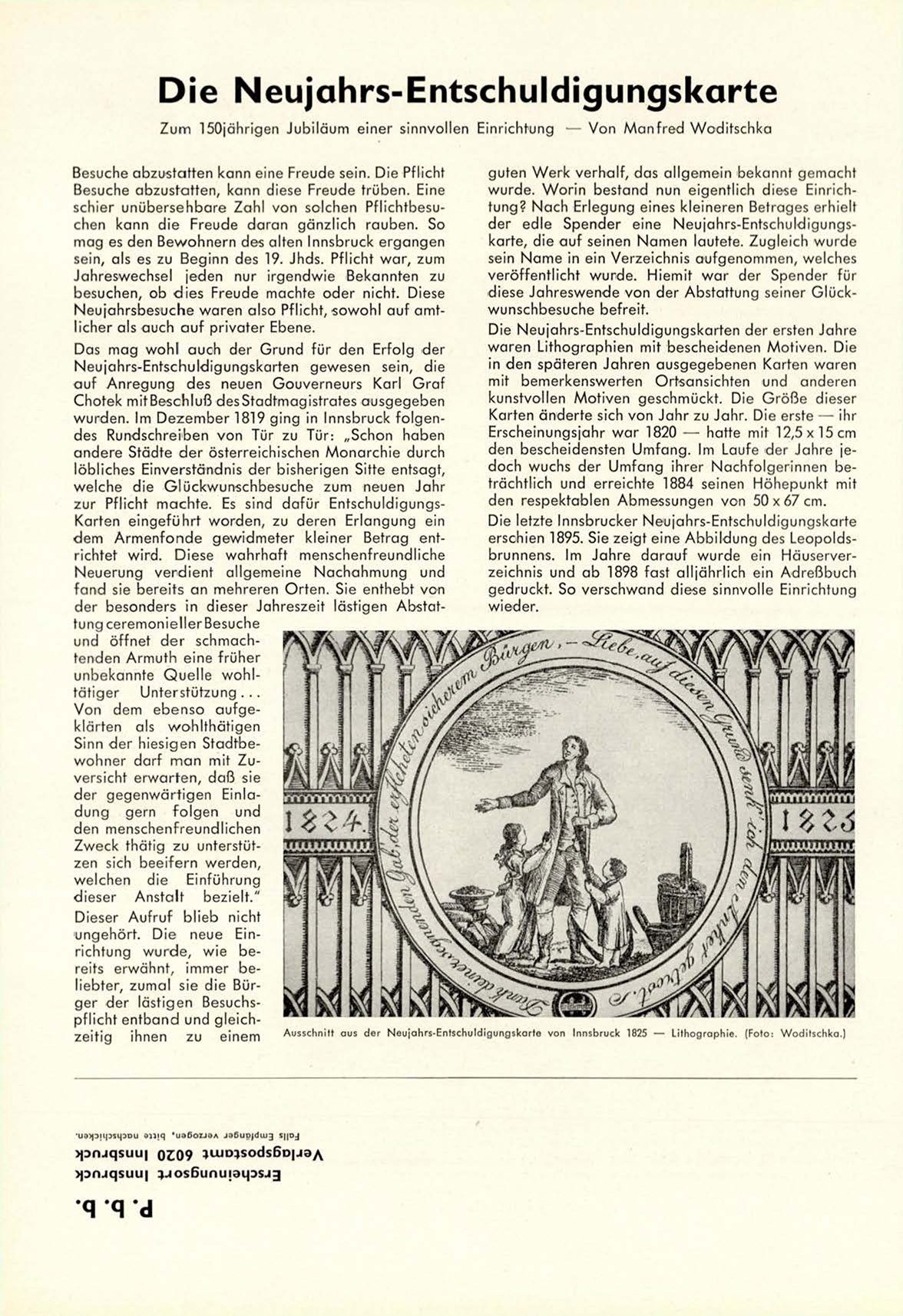 Ausschnitt aus der Neujahrs-Entschuldigungskarte von Innsbruck 1825 — Lithographie. (Foto: Woditschka.)