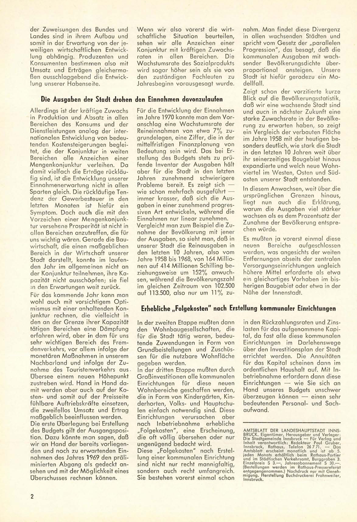 J a h r e 1958 bis 1968, v o n 164 M i l l i o nen auf 414 M i l l i o n e n Schilling b e z i e h u n g s w e i s e um 1 5 2 % a n w u c h sen, w ä h r e n d die Bevölkerungszahl