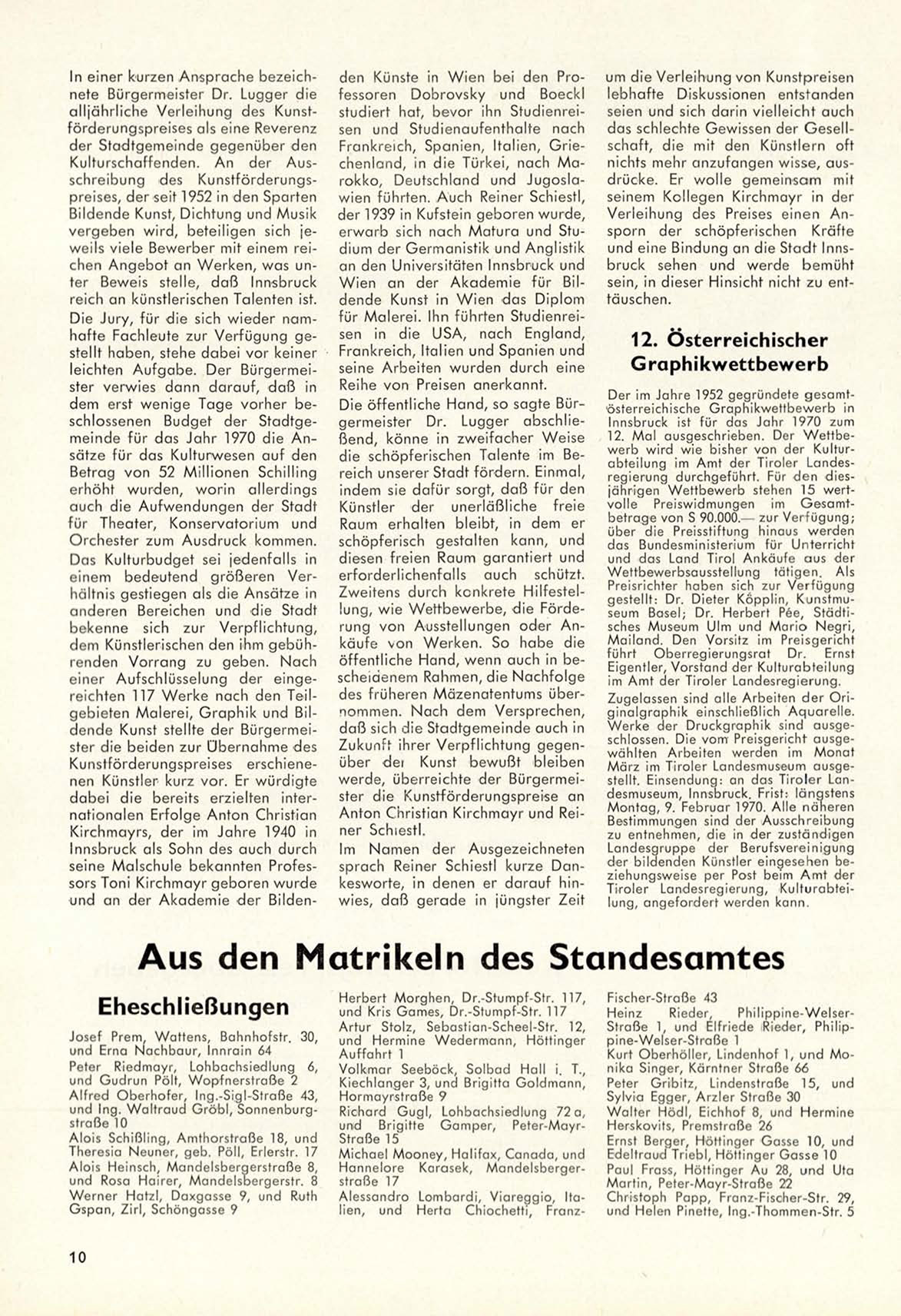 Innsbruck ist f ü r das J a h r 1970 z u m
