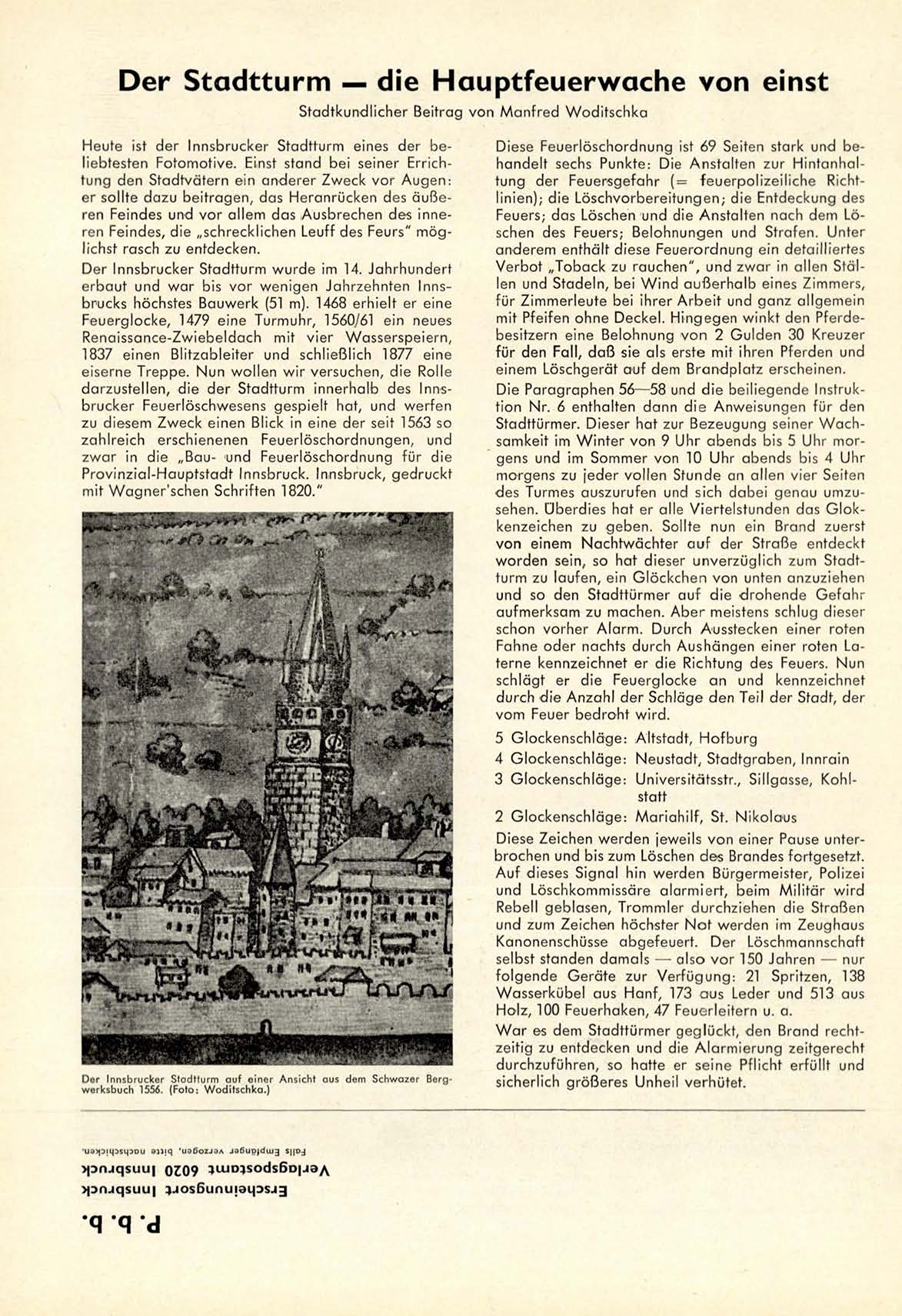 d a r z u s t e l l e n , die d e r Stadtturm i n n e r h a l b des Innsb r u c k e r Feuerlöschwesens gespielt hat, und w e r f e n