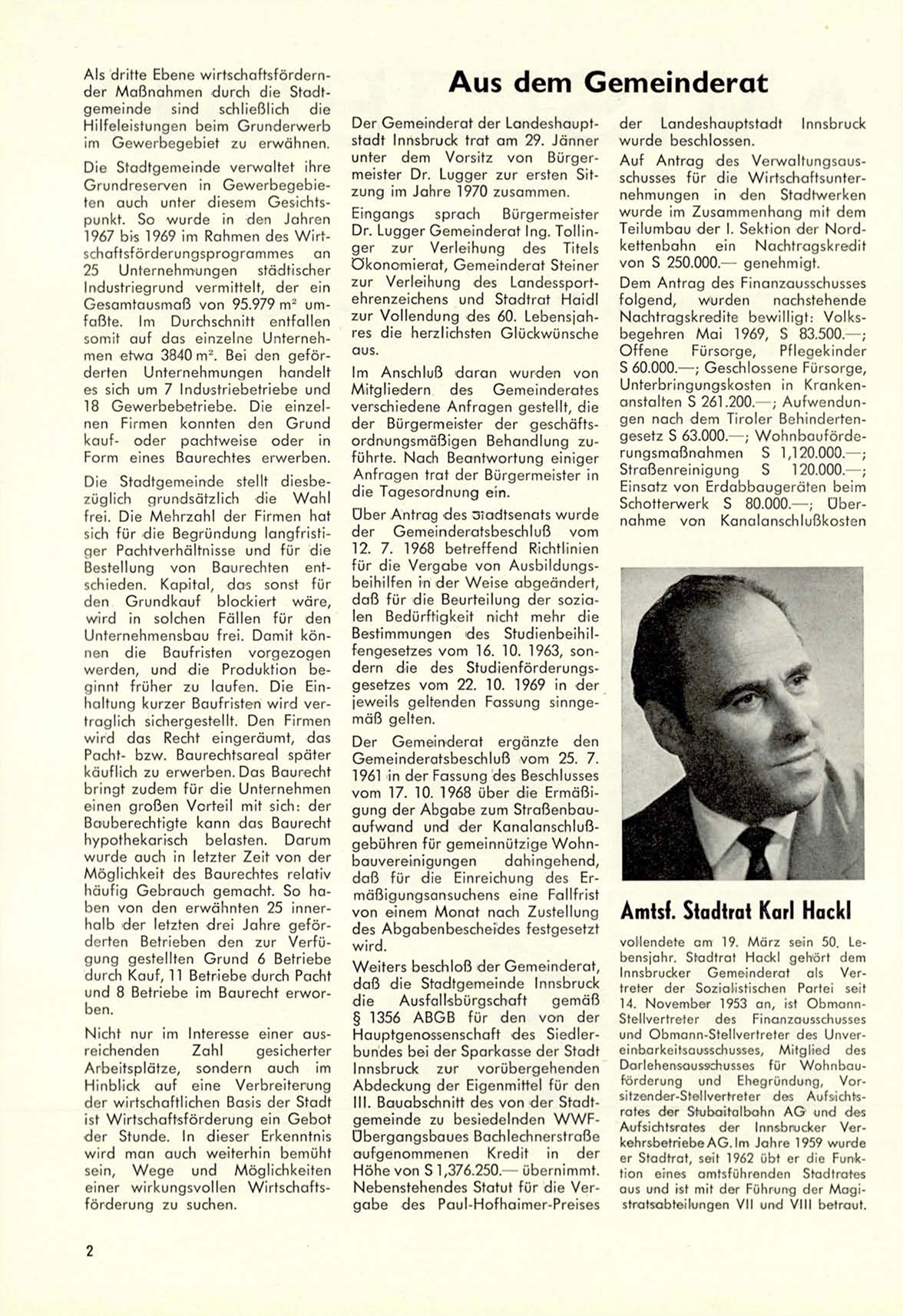Der G e m e i n d e r a t der L a n d e s h a u p t stadt Innsbruck trat a m 29. Jänner