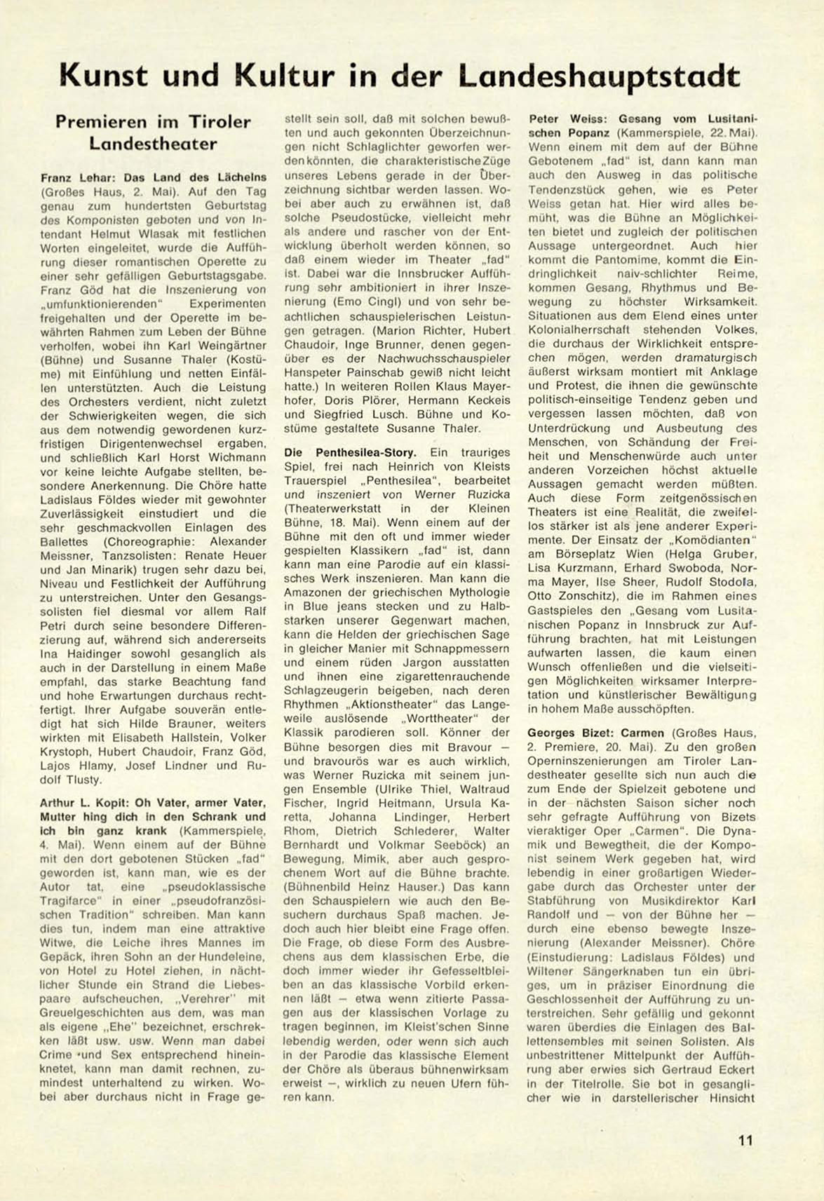 ist. D a b e i war d i e Innsbrucker A u f f ü h rung sehr ambitioniert in ihrer Inszenierung (Emo C i n g i ) und von s e h r beachtlichen s c h a u s p i e l e r i s c h e n L e i s t u n gen g e t r a g e n . (Marion Richter, Hubert