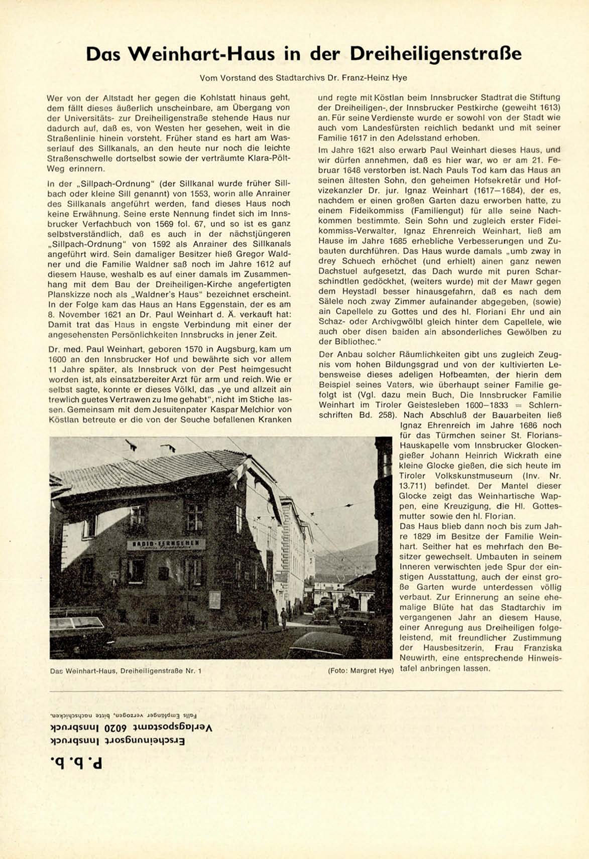 Das W e i n h a r t - H a u s , Dreiheiligenstraße Nr. 1