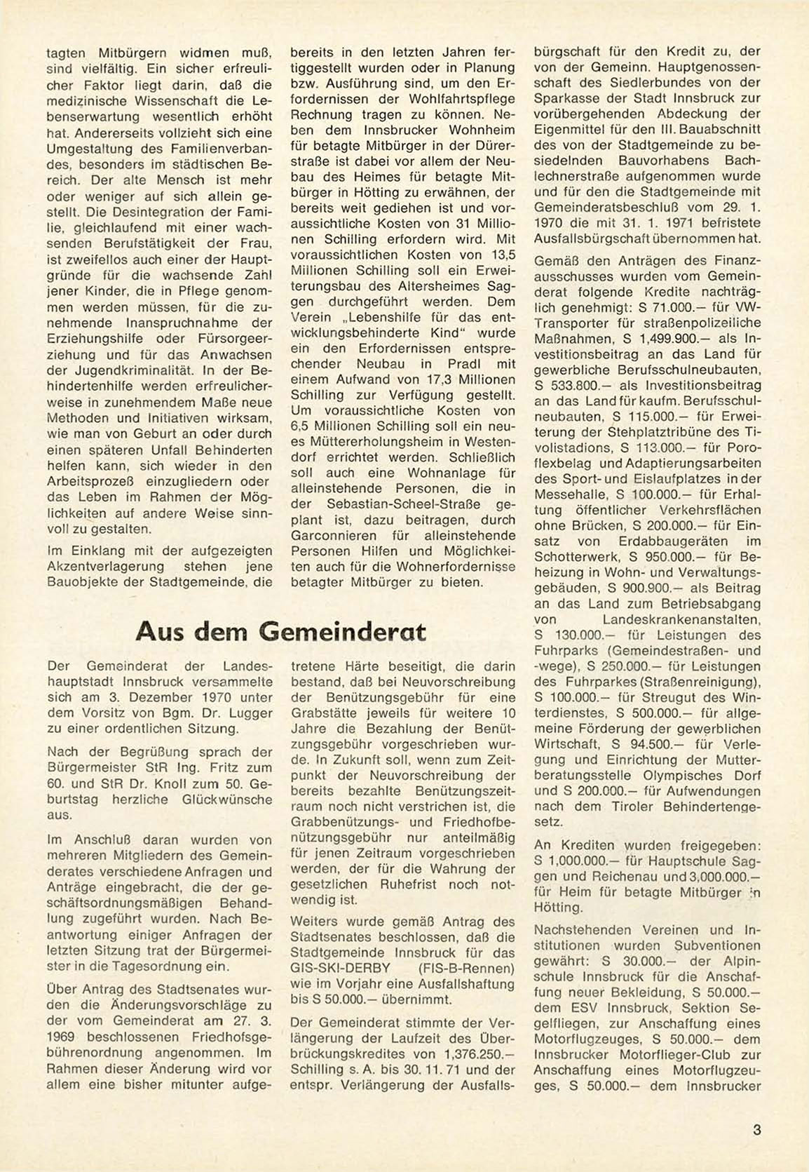 für betagte Mitbürger in der Dürerstraße ist dabei vor allem der Neubau des Heimes für betagte Mitbürger in Hötting zu erwähnen, der