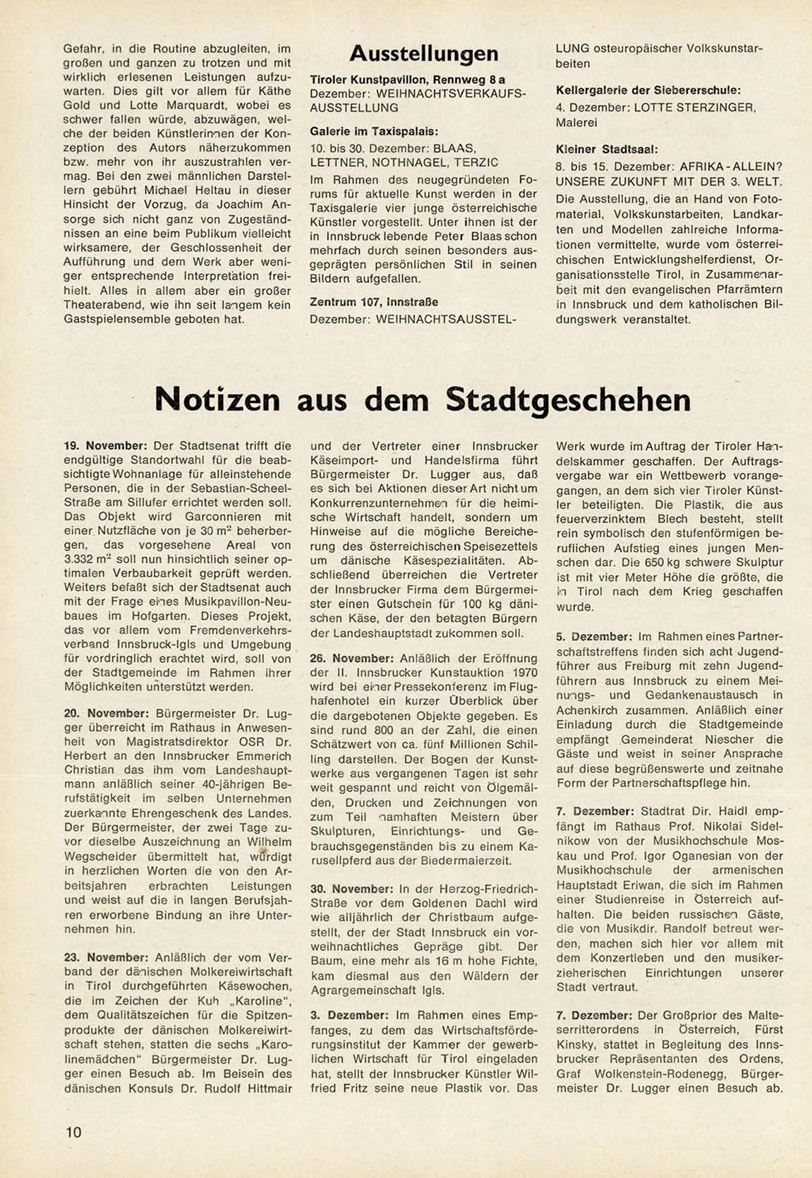 3. Dezember: Im R a h m e n eines E m p f a n g e s , z u d e m das W i r t s c h a f t s f ö r d e rungsinstitut der K a m m e r der g e w e r b lichen Wirtschaft für T i r o l e i n g e l a d e n