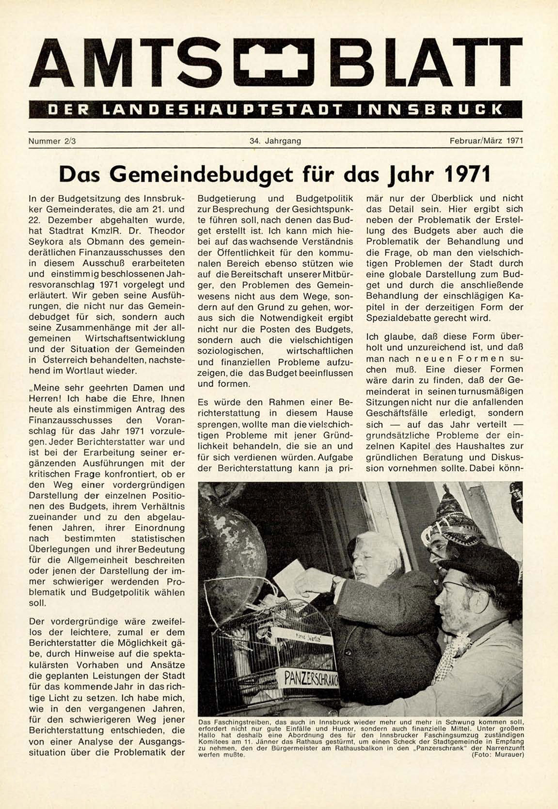 und einstimmig beschlossenen Jahresvoranschlag 1971 vorgelegt und