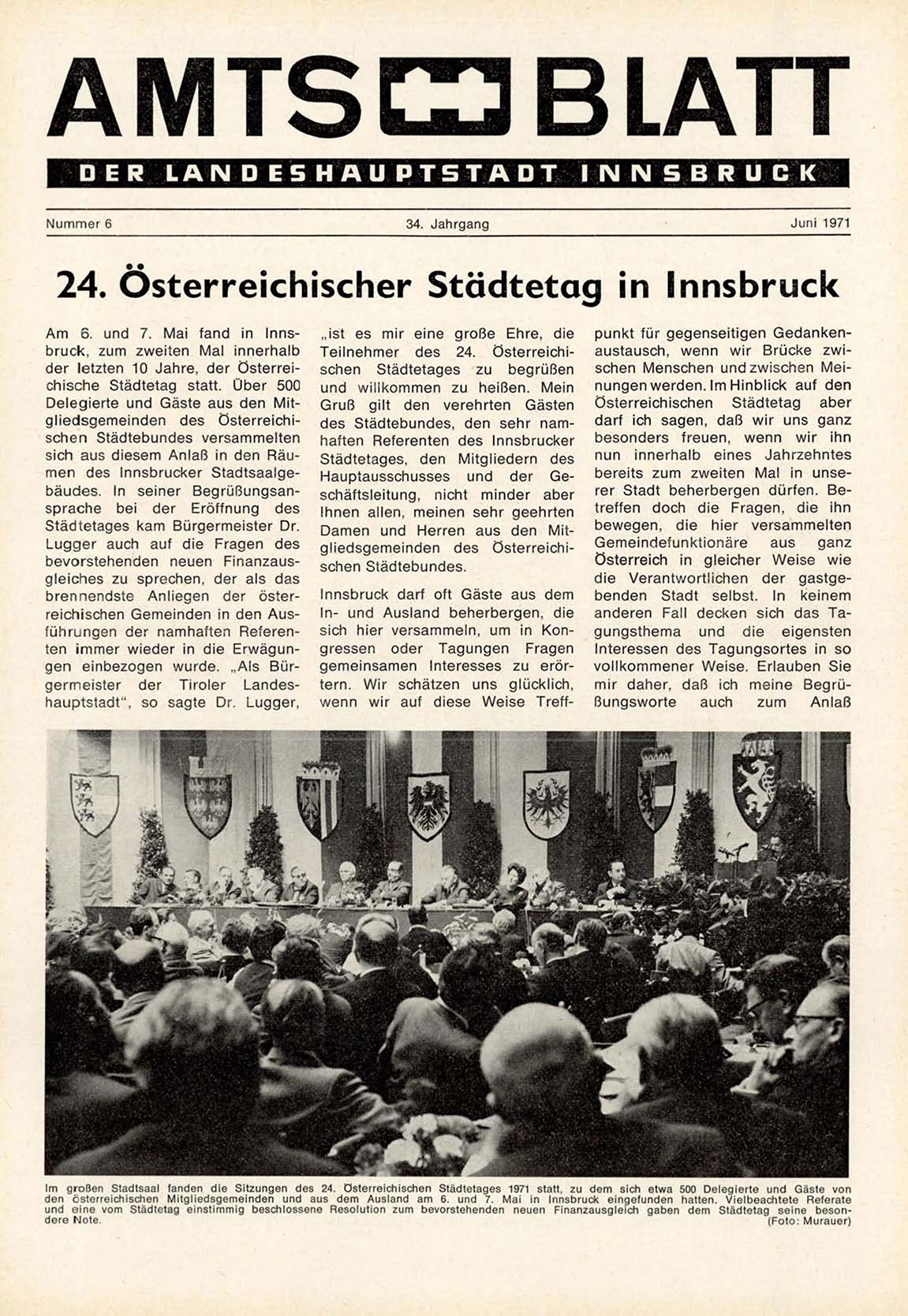 brennendste Anliegen der österreichischen Gemeinden in den Ausführungen der namhaften Referenten immer wieder in die Erwägungen einbezogen wurde. „Als Bürgermeister der Tiroler Landeshauptstadt", so sagte Dr. Lugger,