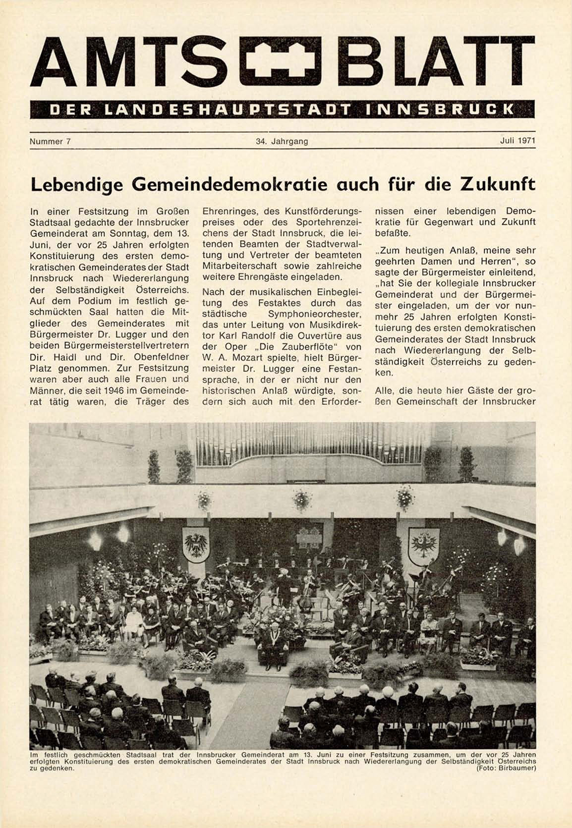 Im festlich geschmückten Stadtsaal trat der Innsbrucker G e m e i n d e r a t am 13. J u n i zu einer Festsitzung z u s a m m e n , um d e r vor 25 J a h r e n